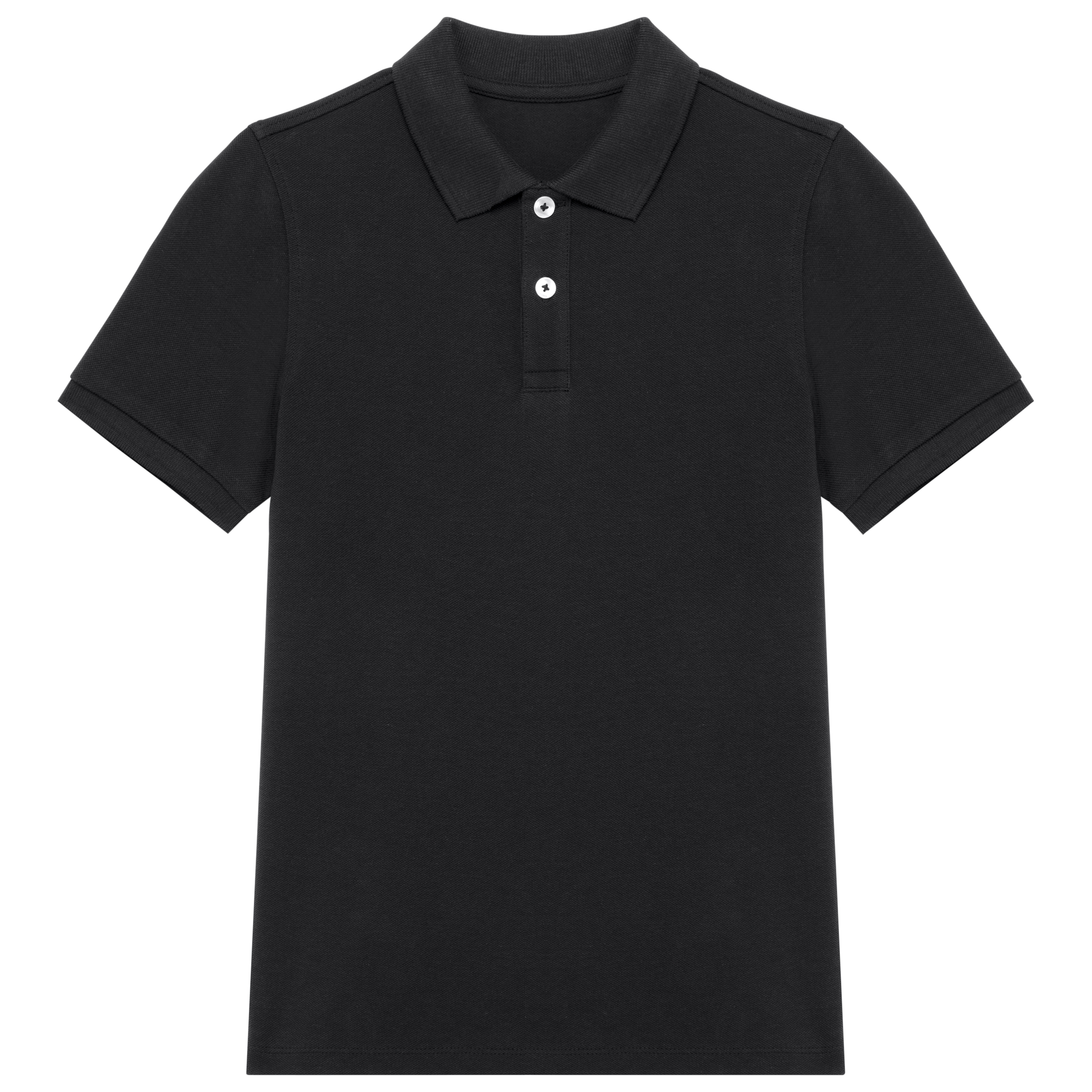 100% biokatoen. Getailleerde snit. Gekamd katoen. Piquétricot. Enzymgewassen. Schouderversteviging. Zijsplitten. Kraag en afwerking mouwuiteinden in 1×1 ribboord. Opgezette knooplijst met 2 knopen afgewerkt met biesstiksel. Contrasterende knopen van gerecycled plastic met parelmoerlook op alle kleuren. Hoofdstof ton sur ton aan de binnenkant van de kraag.. Afwerking met dubbel stiksel onderaan.