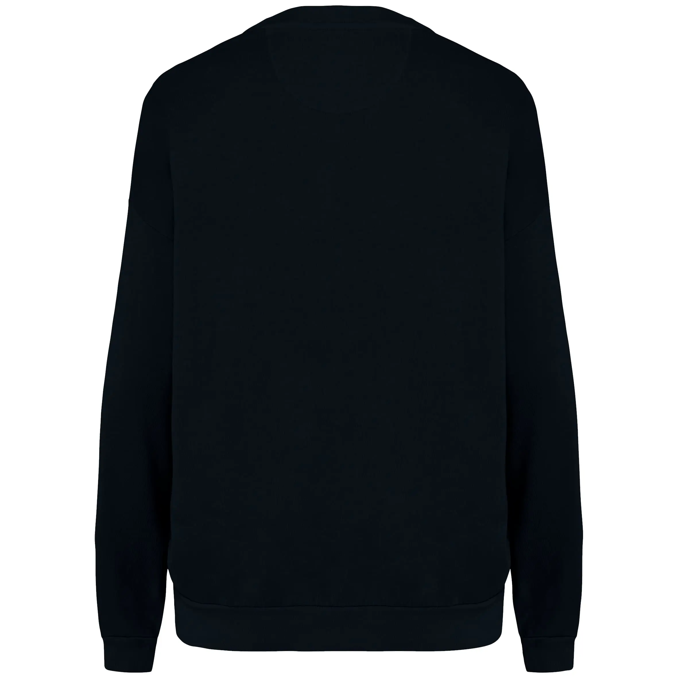 100 % biologisch katoen. Geproduceerd in Portugal. Gekamd en ringgesponnen katoen. Oversized model met afhangende schouders en pofmouwen. Enzymgewassen. Ongeborsteld fleece (French Terry) aan de binnenkant. Halvemaan op de achterkant. Overlocksteek aan de hals, aan de mouwinzetten, aan de zoom en aan de mouwboorden. 1 x 1 ribboord aan de mouwen en de zoom. Halsopening met nektape met kepermotief aan de binnenkant. Kleding geverfd na confectie: de kleuren kunnen per stuk licht verschillen. Dit product kan afgeven als het in contact komt met lichtgekleurde oppervlakken of kleding.
