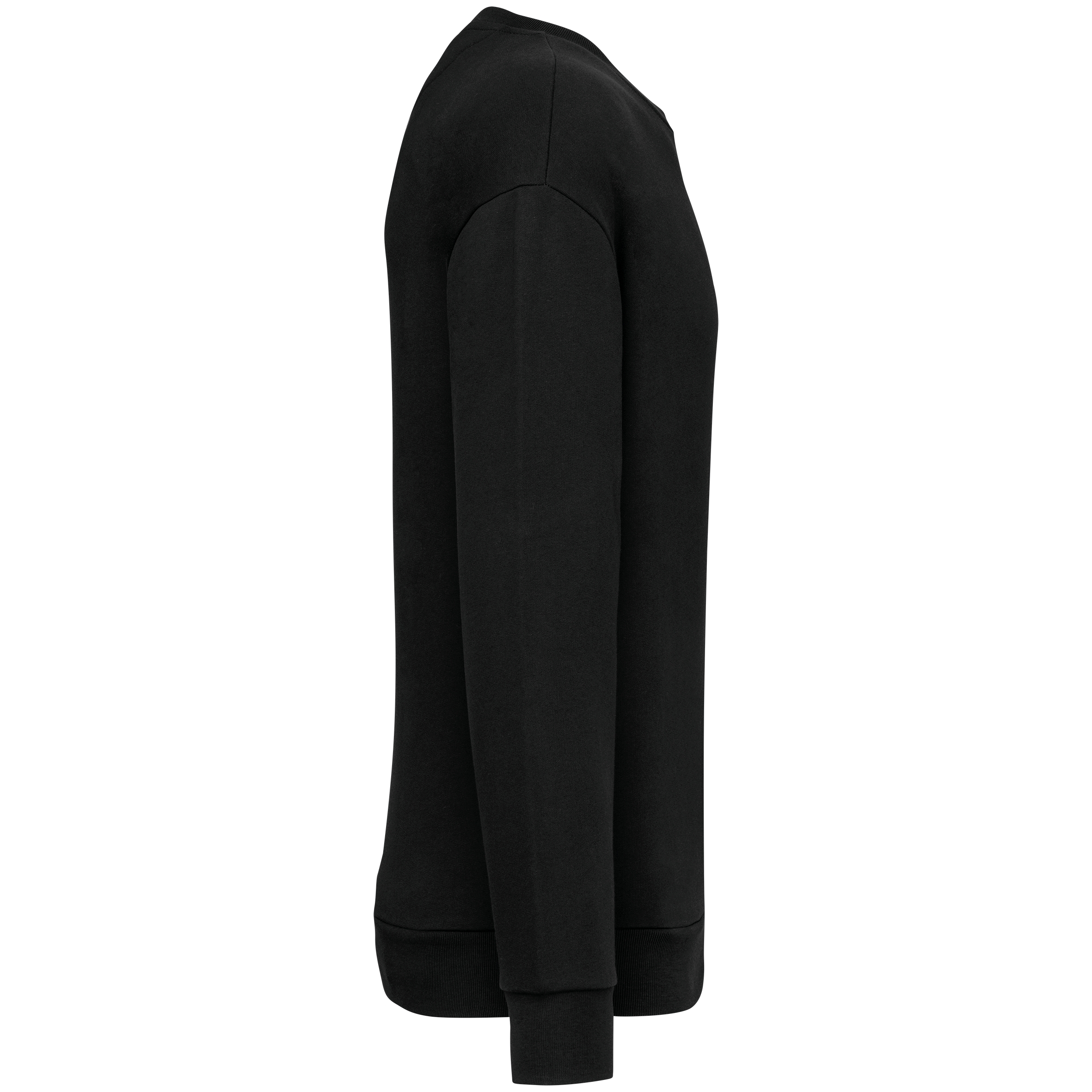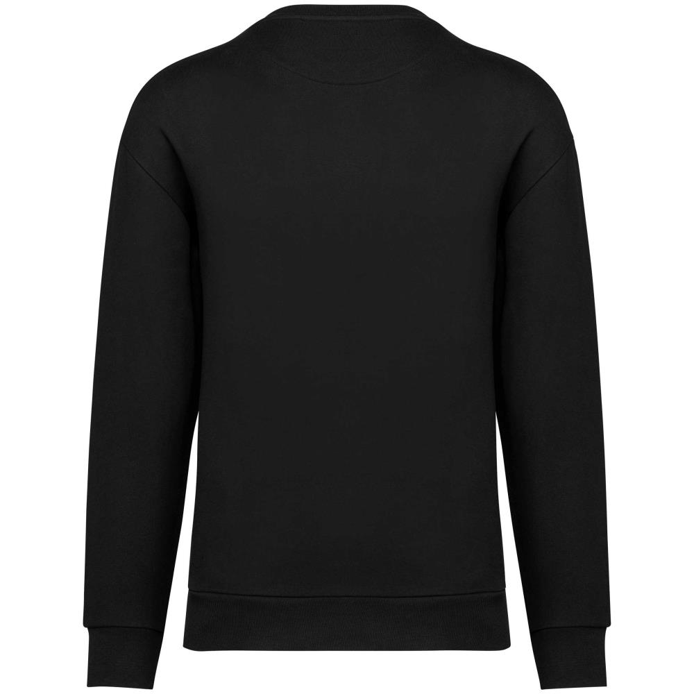 100% biokatoen. Gekamd katoen. Rechte snit met afhangende schouders. Geborstelde fleece 3 draden. Halvemaan op de achterkant. Enzymgewassen. Kraag en mouwuiteinden in 1×1 ribboord, buisvormige montage voor een betere afwerking.