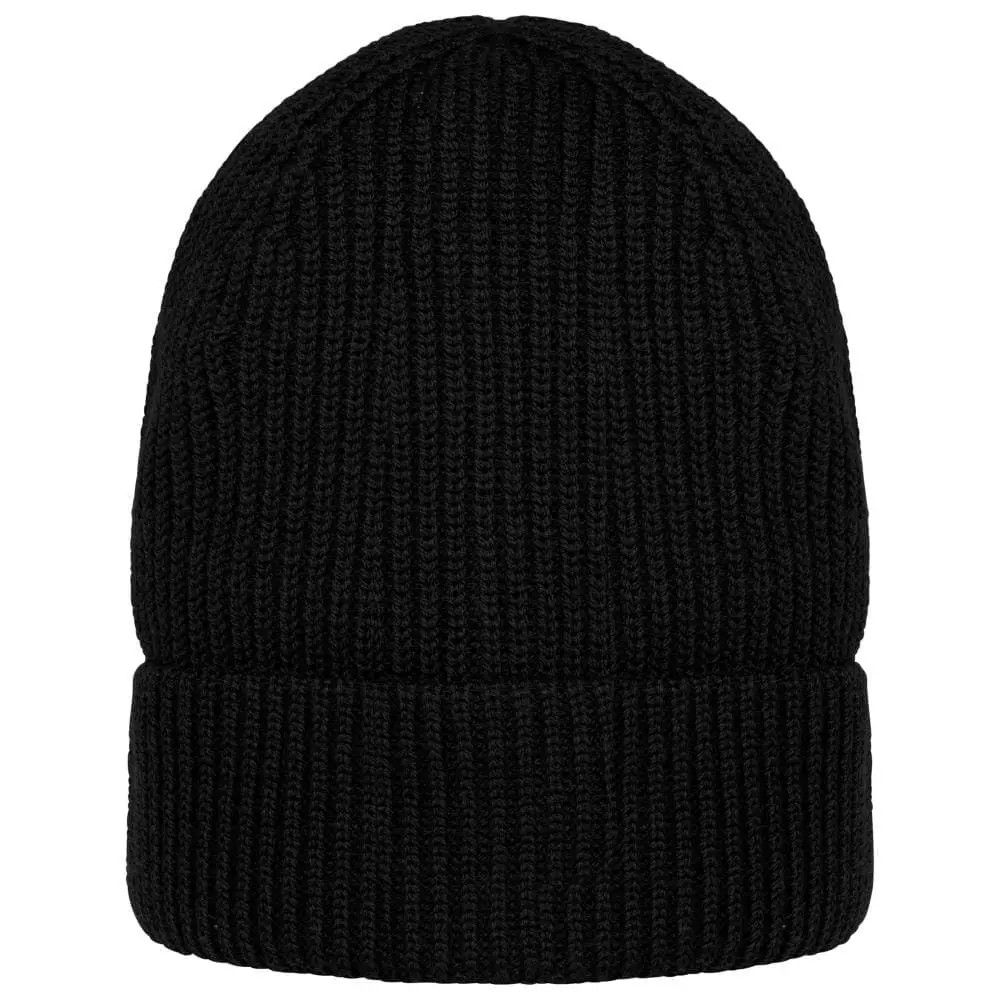 100 % verantwoorde merinoswol RWS*. *Responsible Wool Standard. Gauge 7. Gebreid in 1 x 1 ribboord. Gekamde draad. Muts met brede omslag. Gemiddeld gewicht : 80 g.