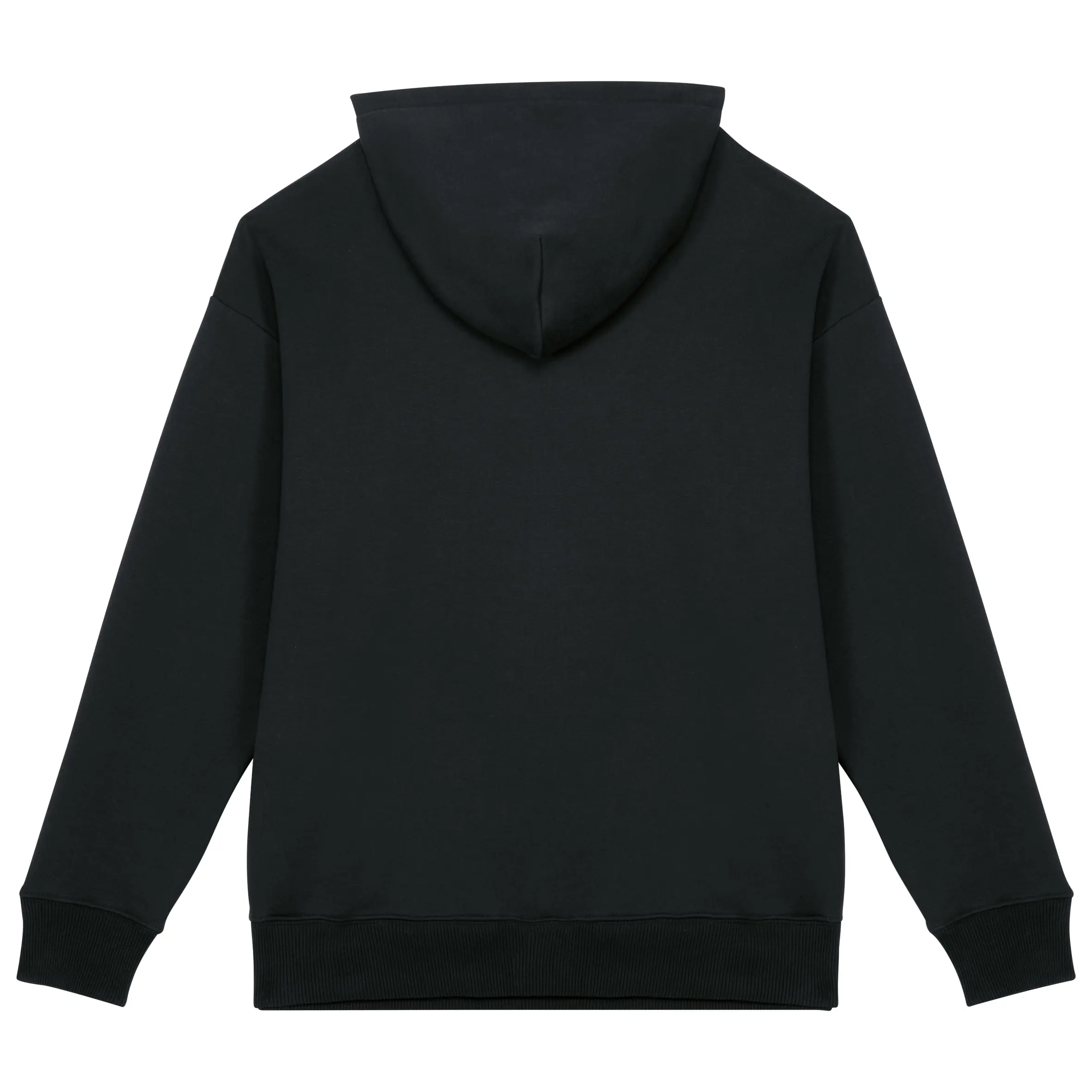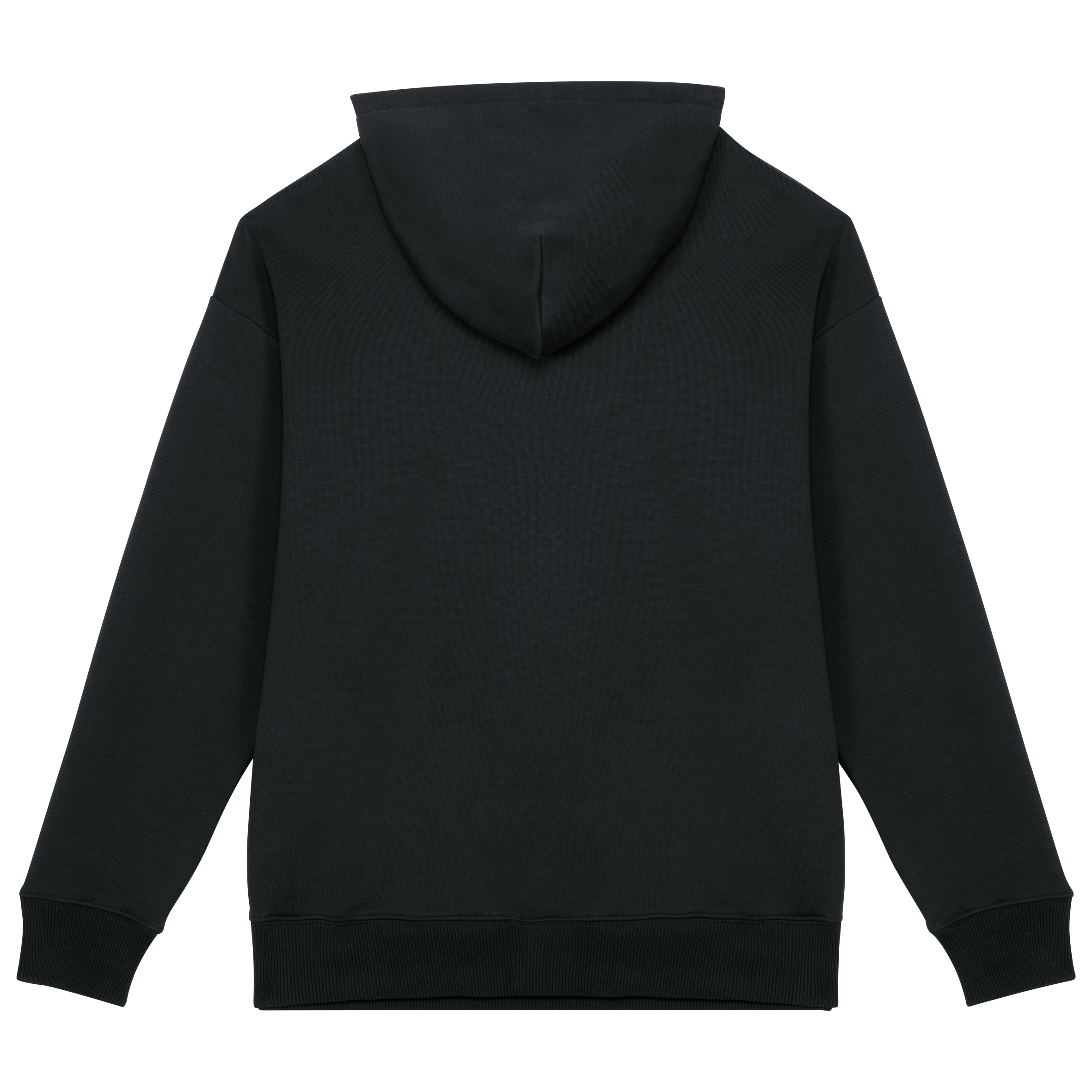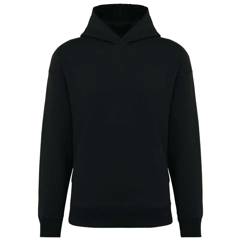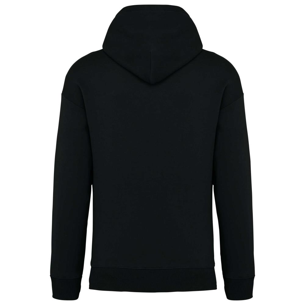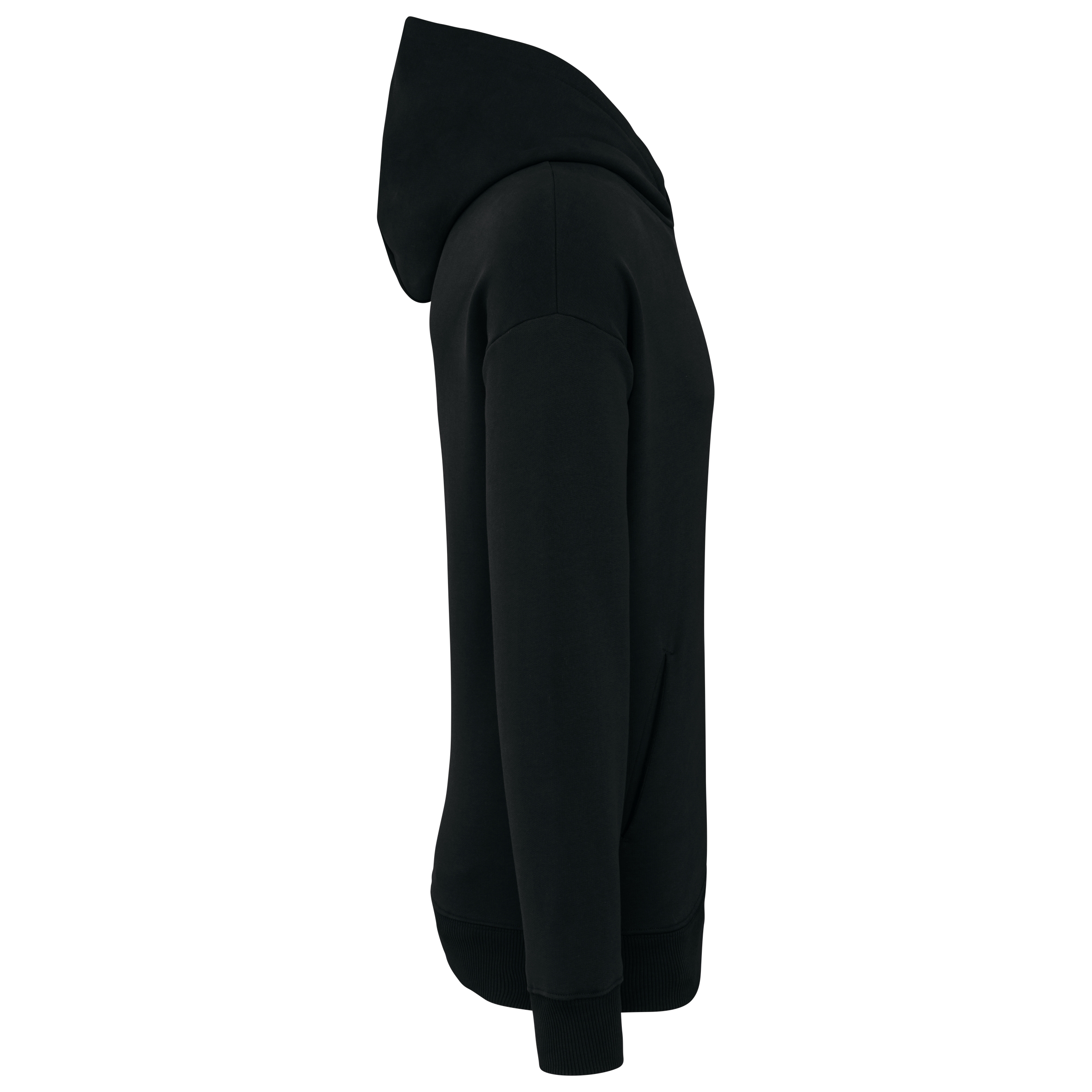 100% biokatoen. Gemaakt in Portugal. Gekamd katoen. Oversized model met afhangende schouders. Enzymgewassen. Geborsteld fleece met 3 LSF-garens (Low Shrinkage Fleece: voorgekrompen fleece). Gevoerde capuchon in de hoofdstof met stiksel. Kleine zijzakjes. Halvemaan op de achterkant. Afwerking nekband in ton-sur-ton visgraatmotief. Hals, mouwuiteinden en onderkant in 2×1 ribboord. Dubbel stiksel aan weerszijden op de manchetten en onderkant.