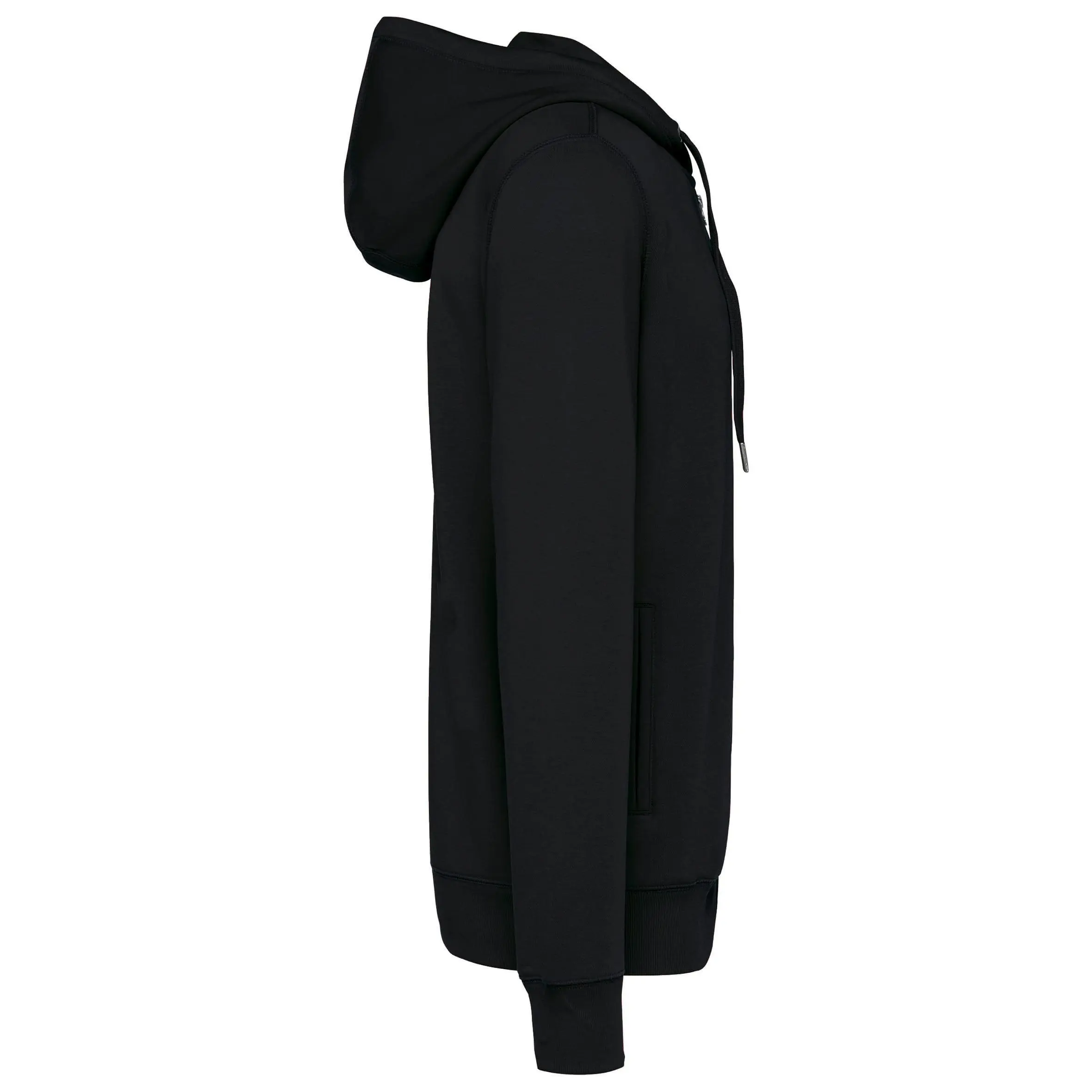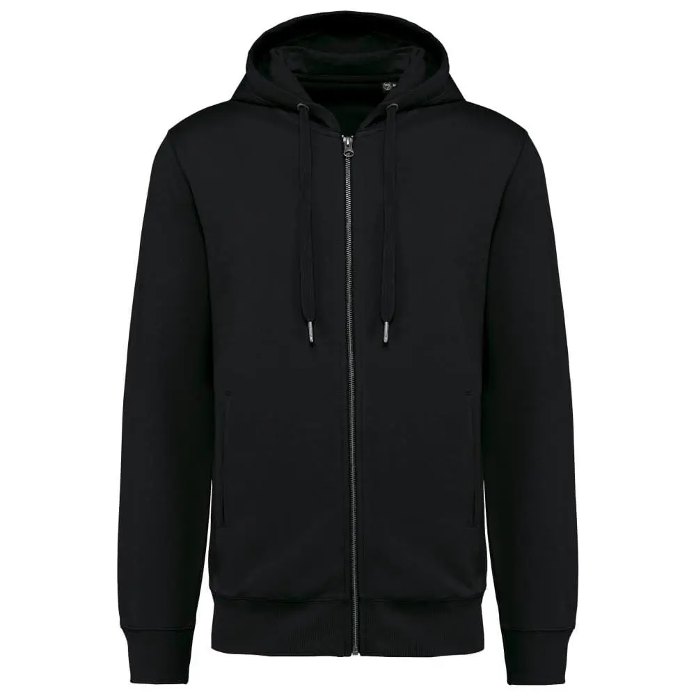 80% biologisch katoen / 20% gerecycleerd polyester post-consumer. Oxford Grey 75% biologisch katoen / 25% gerecycleerd polyester post-consumer. Fleece french terry LST (Low Shrinkage Terry). Stof: enzymgewassen. Fitted pasvorm. 2 omzoomde zakken aan de voorkant. Metalen ritssluiting. Ribboord aan mouwuiteinden, onderkant en de rand van de gevoerde capuchon, met toon-op-toon aanrijgkoordjes met metalen uiteinde. Halvemaanvormige halsopening op de achterkant, voor eenvoudige personalisatie van het merk aan de binnenkant. Nektape in visgraatmotief aan de binnenkant van de kraag. Geen merklabel in de kraag, maar enkel een maatlabel voor eenvoudige personalisatie. Gecertificeerd STANDARD 100 by OEKO-TEX®N° CQ1007/8, IFTH.