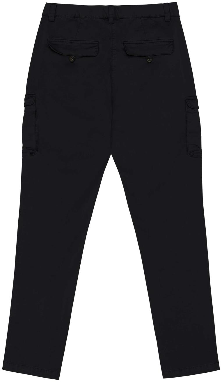98 % biokatoen / 3 % elastaan. Twillstof. Afgewassen look. Tailleband met riemlussen en binnenafwerking met contrasterende kettingsteek. Tailleband met knopen en gulp met rits in gerecycled metaal met knoop in de tailleband. Twee zakken aan de voorkant en een muntzak met onzichtbare rits in de rechterzak. Steekzakken met klep en knoop van gerecycled plastic aan de zijkant. Twee achterzakken met klep, omzoomde opening en knoop van gerecycled plastic. Verstevigende biessteek aan het kruis voor- en achteraan. De broekspijpen zijn afgewerkt met een enkel gestikte zoom. Geen merklabel, maar een afscheurbaar maatlabel voor eenvoudige personalisatie. Kleding geverfd na confectie: de kleuren kunnen per stuk licht verschillen. Dit product kan afgeven als het in contact komt met lichtgekleurde oppervlakken of kleding.