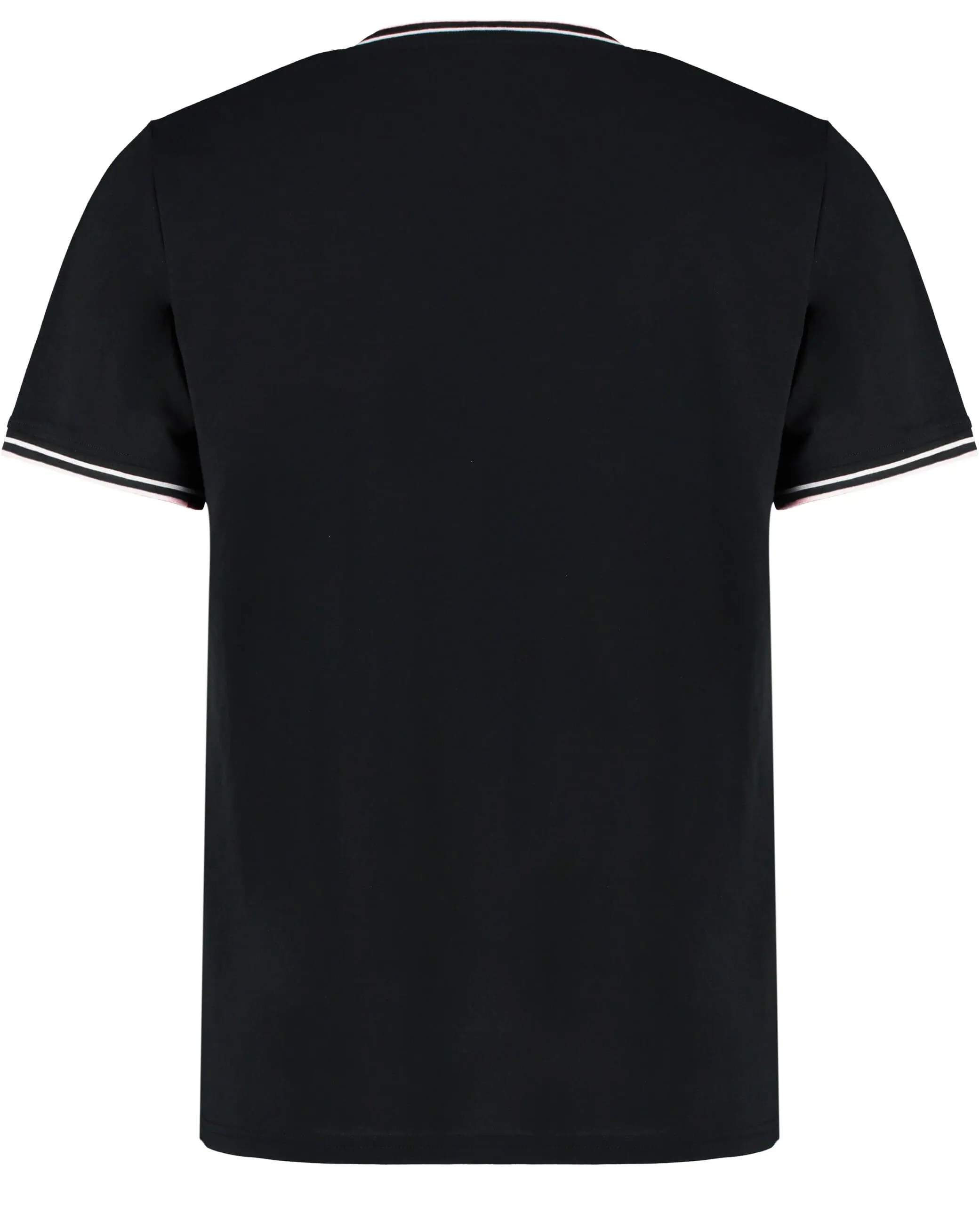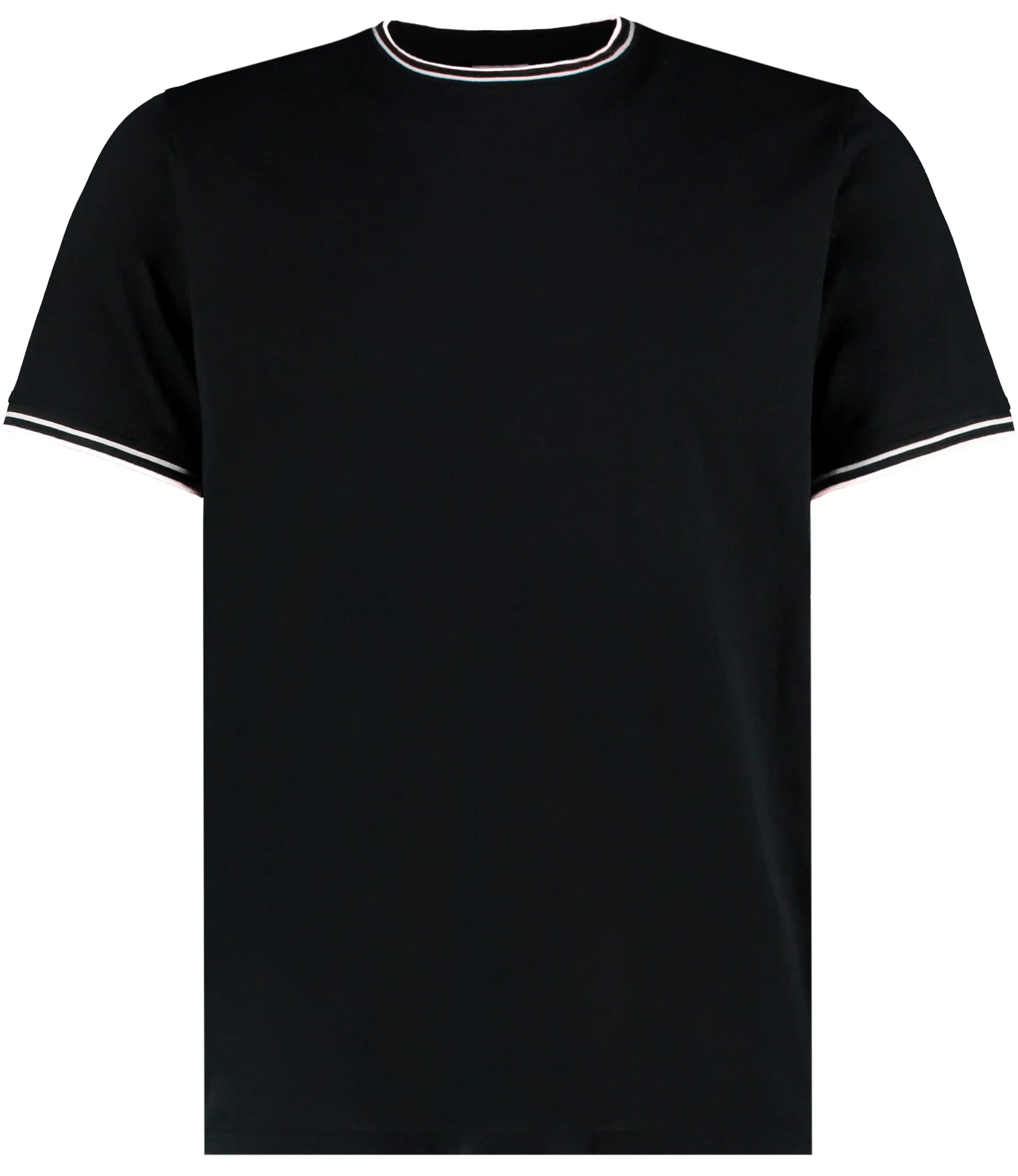 – 1×1 omgeslagen ribgebreide hals en manchet met contrasterend uiteinde– Bies achteraan in de nek in dezelfde stof– Siernaden aan de bovenkant gestikt– Dubbel gestikte zoom– Kustom Kit® afscheurbaar label– 40 °C wasbaar– Strijken toegelaten– Korte mouwen– Set-In– met elastiekje– Ronde hals