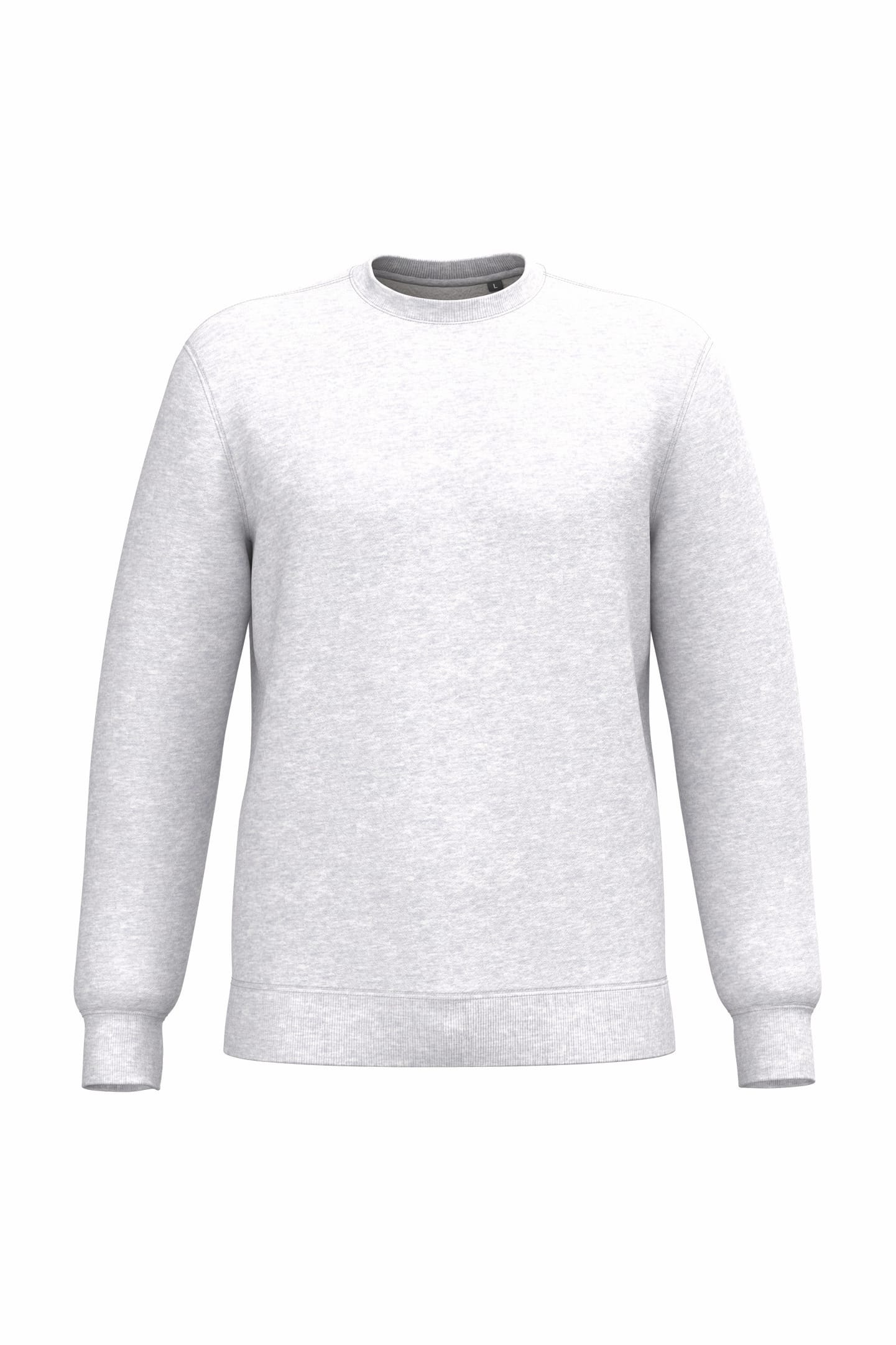 50% ringgesponnen katoen / 50% gerecycled polyester post-consumer. Geborsteld fleece aan de binnenkant. Straight snit. Cut-and-sew-techniek. 2×1 ribboord in buisconstructie voor een betere afwerking aan de hals, de mouwuiteinden en de onderkant. Toon-op-toon nektape in jersey in de kraag. Geen merklabel in de kraag, maar enkel een maatlabel voor eenvoudige personalisatie.