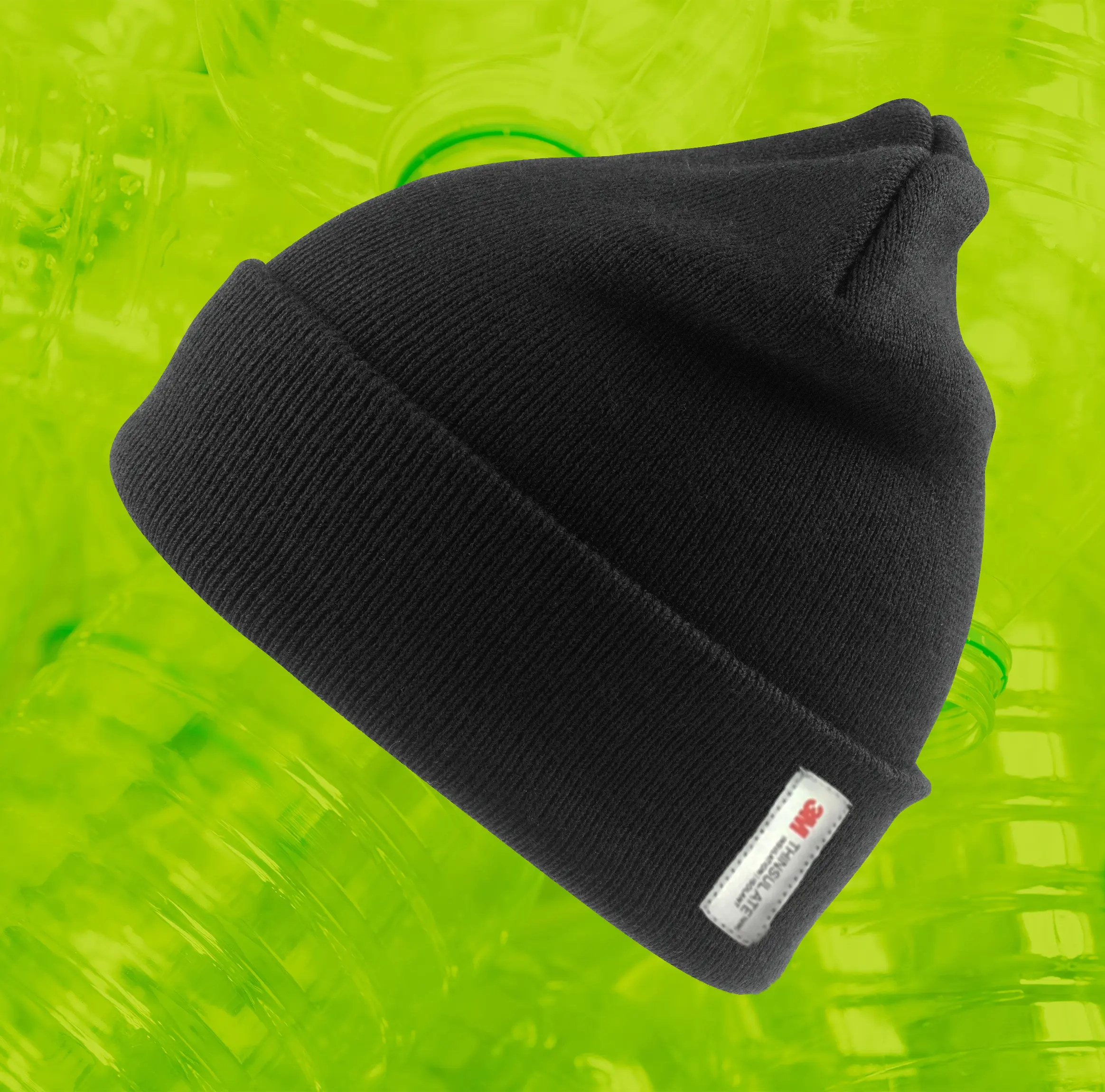 50% gerecycled polyester / 50% polyacryl. Duurzaam kwaliteitsgaren. Gemaakt van petflessen. Sneldrogend (Quick Dry). Muts met omgevouwen boord. Dubbele dikte. Voering in Thinsulate™.