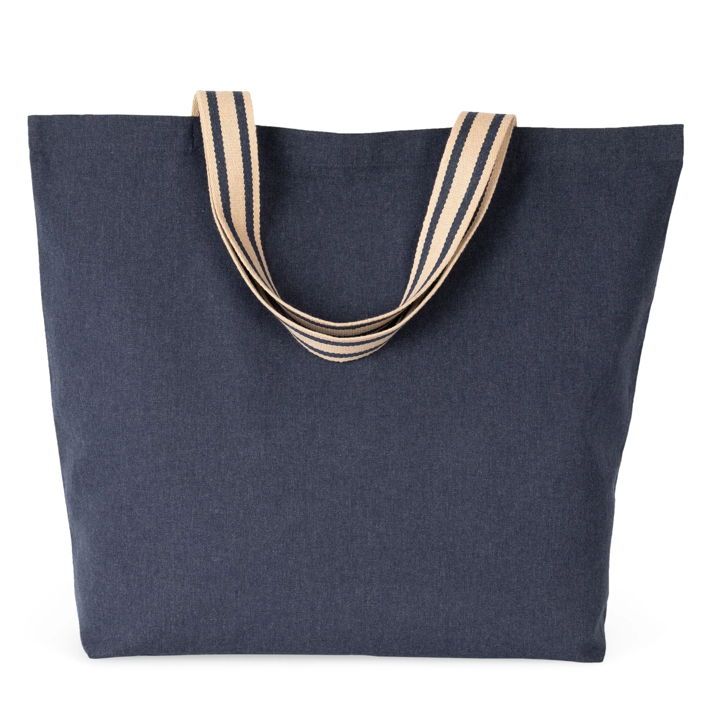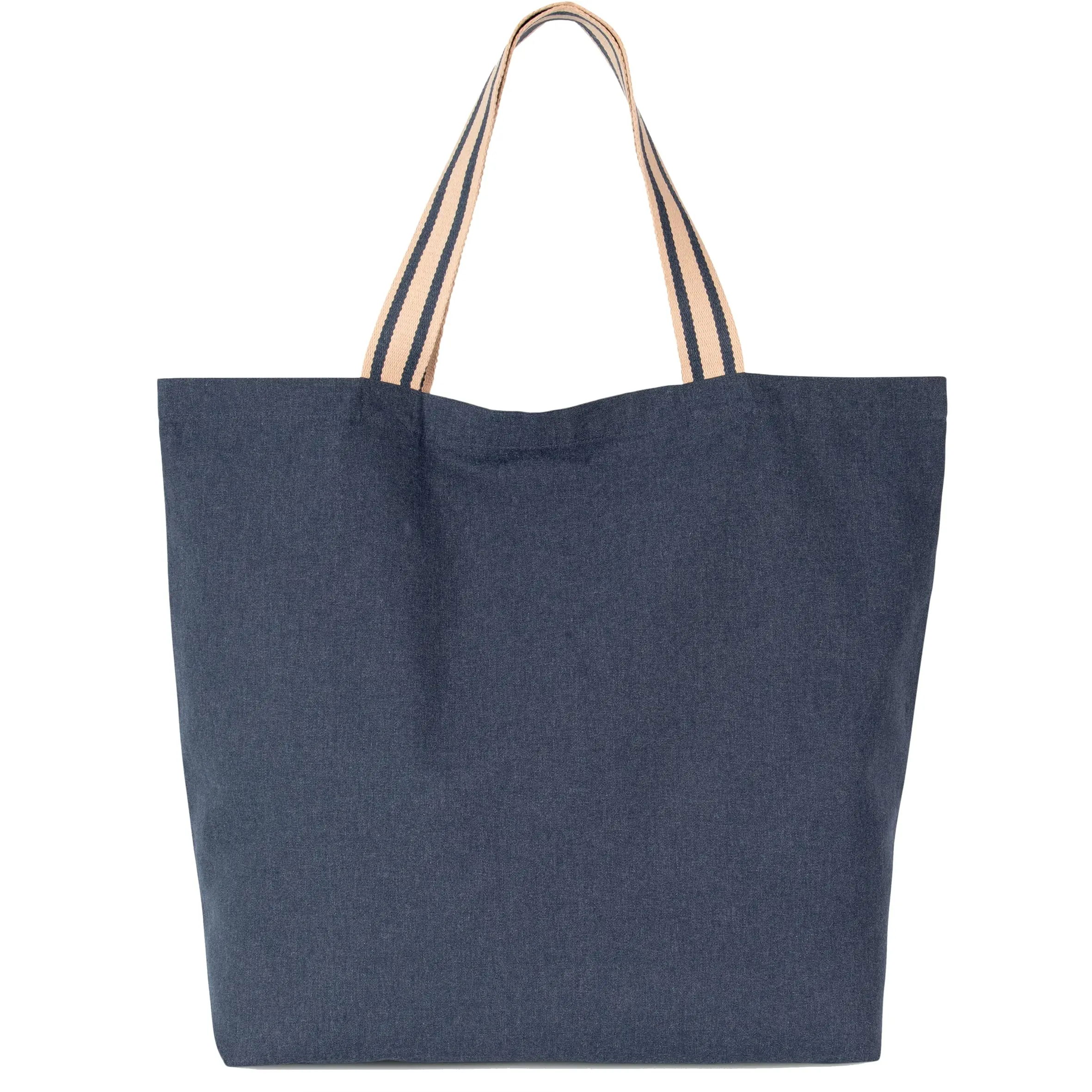Hemp & Horizon Blue: 75 % pre-consumer Gerecycled katoen / 22 % post-consumer Gerecycled Polyester / 3 % andere vezels. Rosewood & Topaz Blue: 67 % pre-consumer Gerecycled katoen / 30 % post-consumer Gerecycled Polyester / 3 % andere vezels. 1 FORMAAT (50 x 16 x 60cm) Inhoud: 48L. De contrastkleurige hengels hebben een gestreept grafisch patroon en zjin 60 cm lang en 4,25 cm breed.