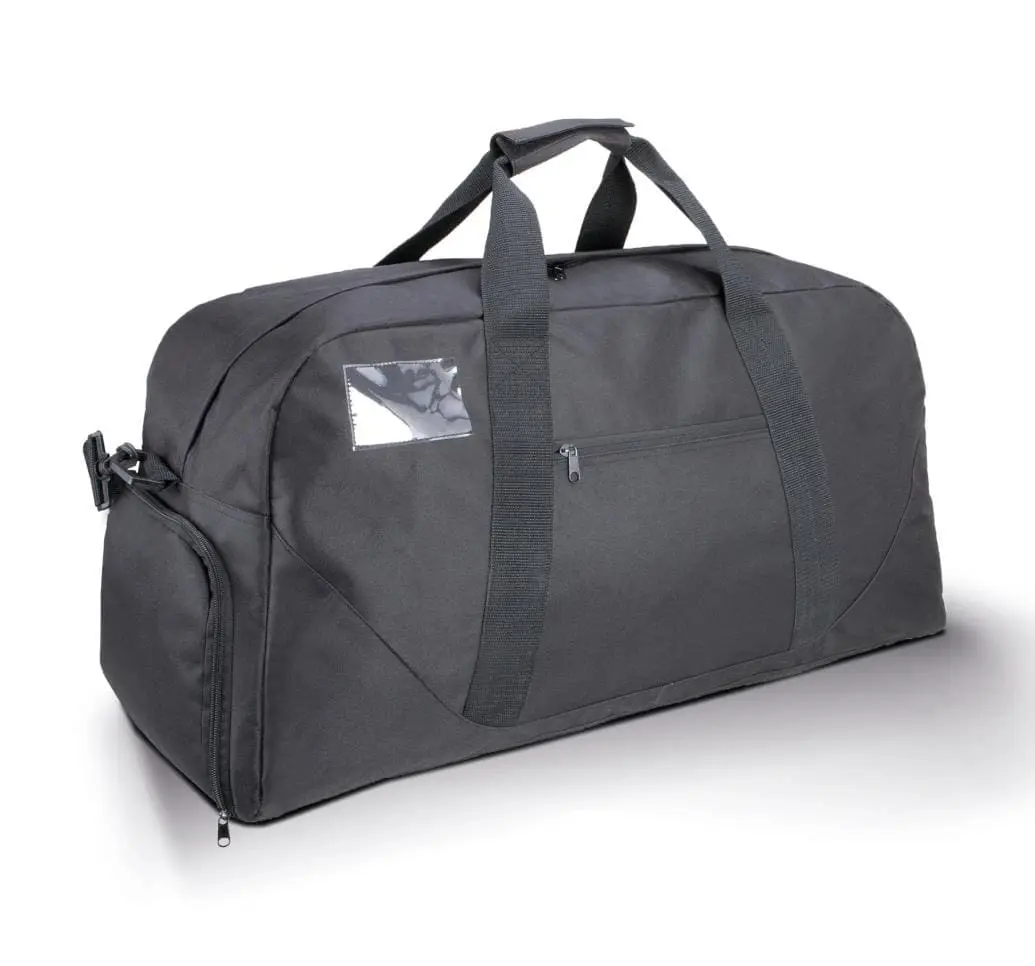 100% polyester. Reis- werktas van 600D polyester, afneembare en verstelbare schouderband, naamkaarthouder, zijvak met rits, verstevigde webbing hengsels, plastic nopjes aan de onderkant, schoenen compartiment.