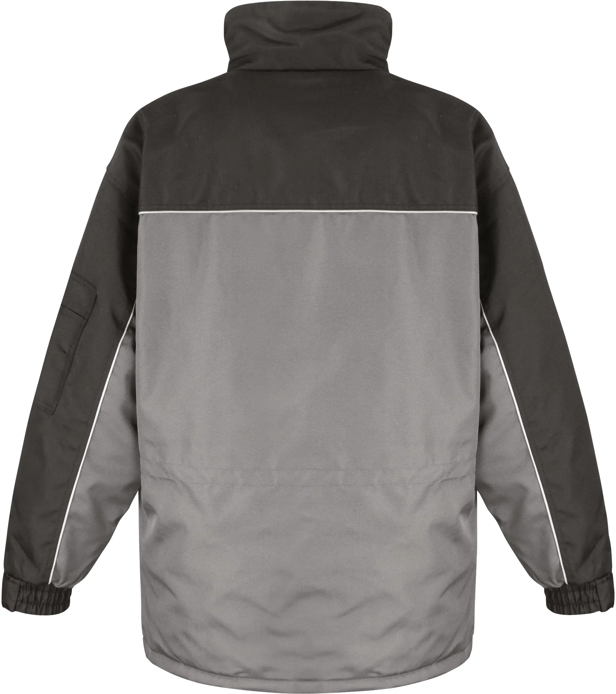 Buitenkant: 600D heavy duty oxford Taslon met PU coating. Wattering: 100% polyester 160 gram. Binnenvoering: bovenkant 100% polyester fleece en onderkant 100% 190T nylon taffeta. Versterkte naden. Kraag met fleece gevoerd. 3M™Scotchlite ™ reflecterende piping op de voor- en achterkant en op de mouwen. Volledige ritssluiting met stormoverslag met drukknopen. Lusjes voor headset. 2 opgezette zakken, 2 borstzakken met 3 penhouders en 2 sleutelringen (waarvan 1 veborgen) en GSM zak. 2 binnenzakken en een groot vak van mesh. Elastische mouwuiteinden en onderkant. Drukkersritsen.