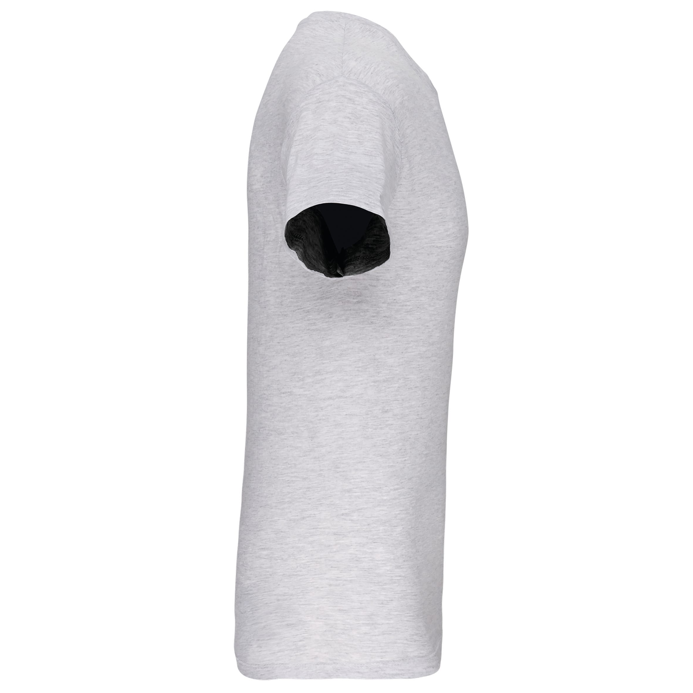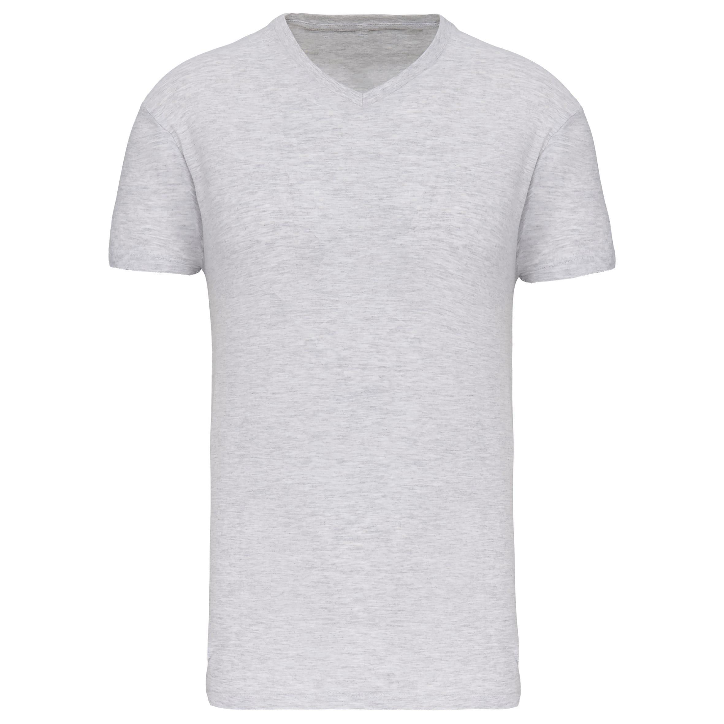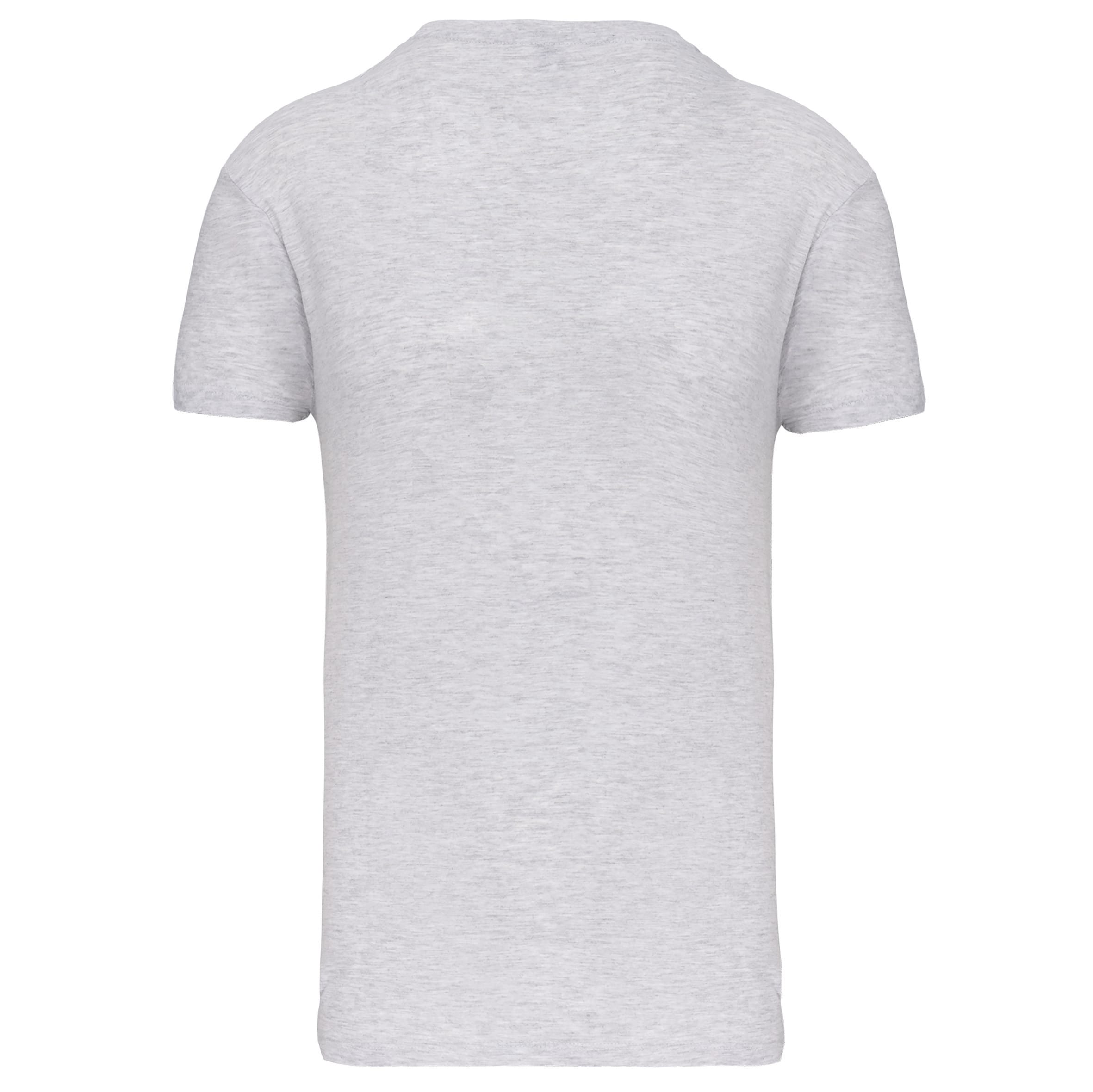 Effen kleuren : 100% katoen. Kleur Ash Heather 98% katoen / 2% viscose en Oxford Grey : 90% katoen / 10% viscose. Alle kleuren zijn gemaakt van biologisch katoen in omschakeling. V-hals in ribboord met elasthan. Toon op toon nektape. Buisvormig. Dubbel stiksel aan mouwuiteinden en onderkant. Gecertificeerd STANDARD 100 by OEKO-TEX®N° CQ1007/7, IFTH.