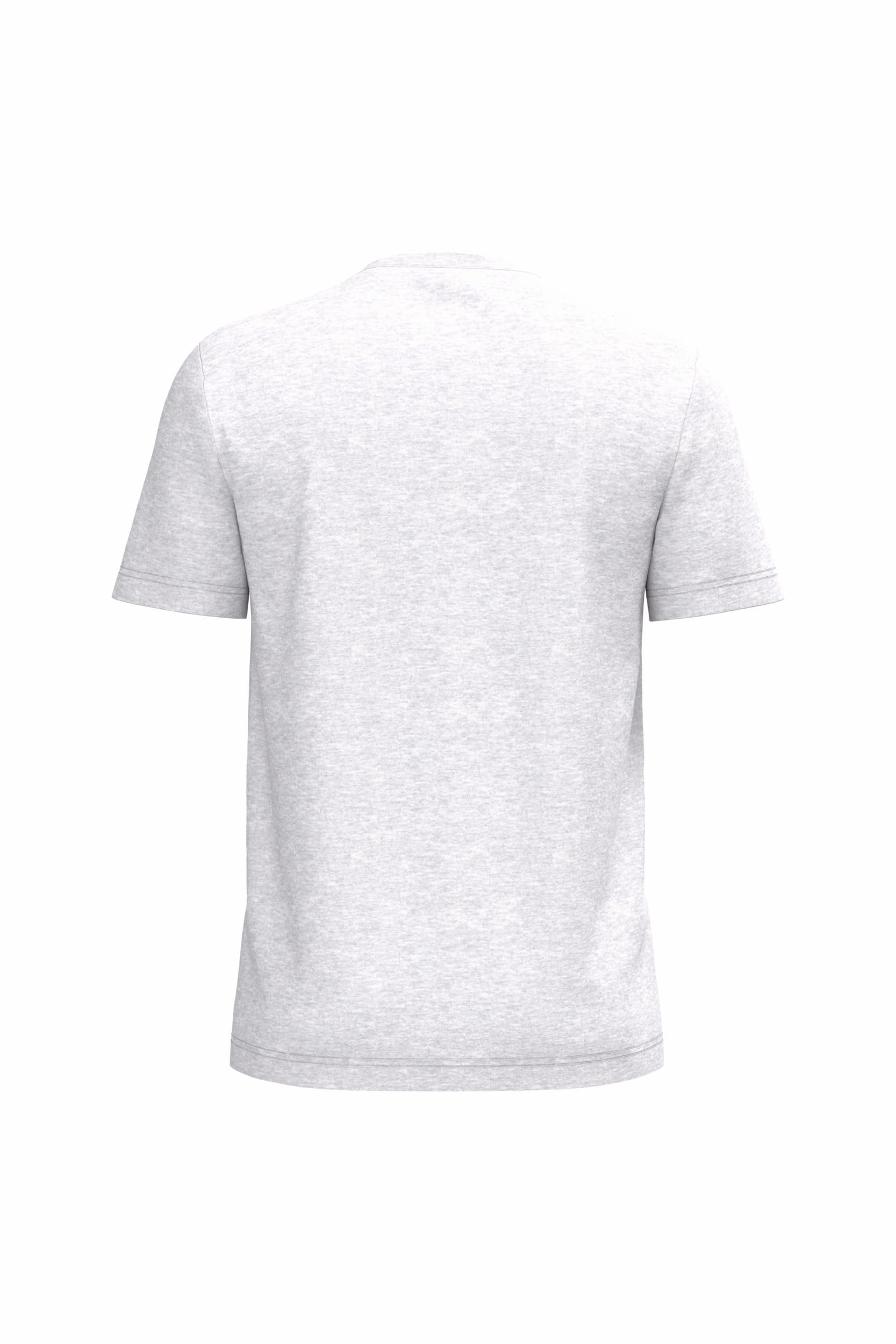 Effen kleuren : 100% katoen. Kleur Ash Heather : 98% katoen / 2% viscose. Kleur Oxford Grey : 90% katoen / 10% viscose. Kleuren Wine Heather ; French Navy Heather ; Green Marble Heather ; Cloudy Blue Heather : 80% katoen / 20% polyester. En kleur Grey Heather : 70% katoen / 30% polyester. Alle kleuren zijn gemaakt van biologisch katoen in omschakeling. Ronde hals in ribboord met elasthan. Toon-op-toon nektape. Buisvormig. Dubbel stiksel aan mouwuiteinden en onderkant. Gecertificeerd STANDARD 100 by OEKO-TEX®N° CQ1007/7, IFTH.