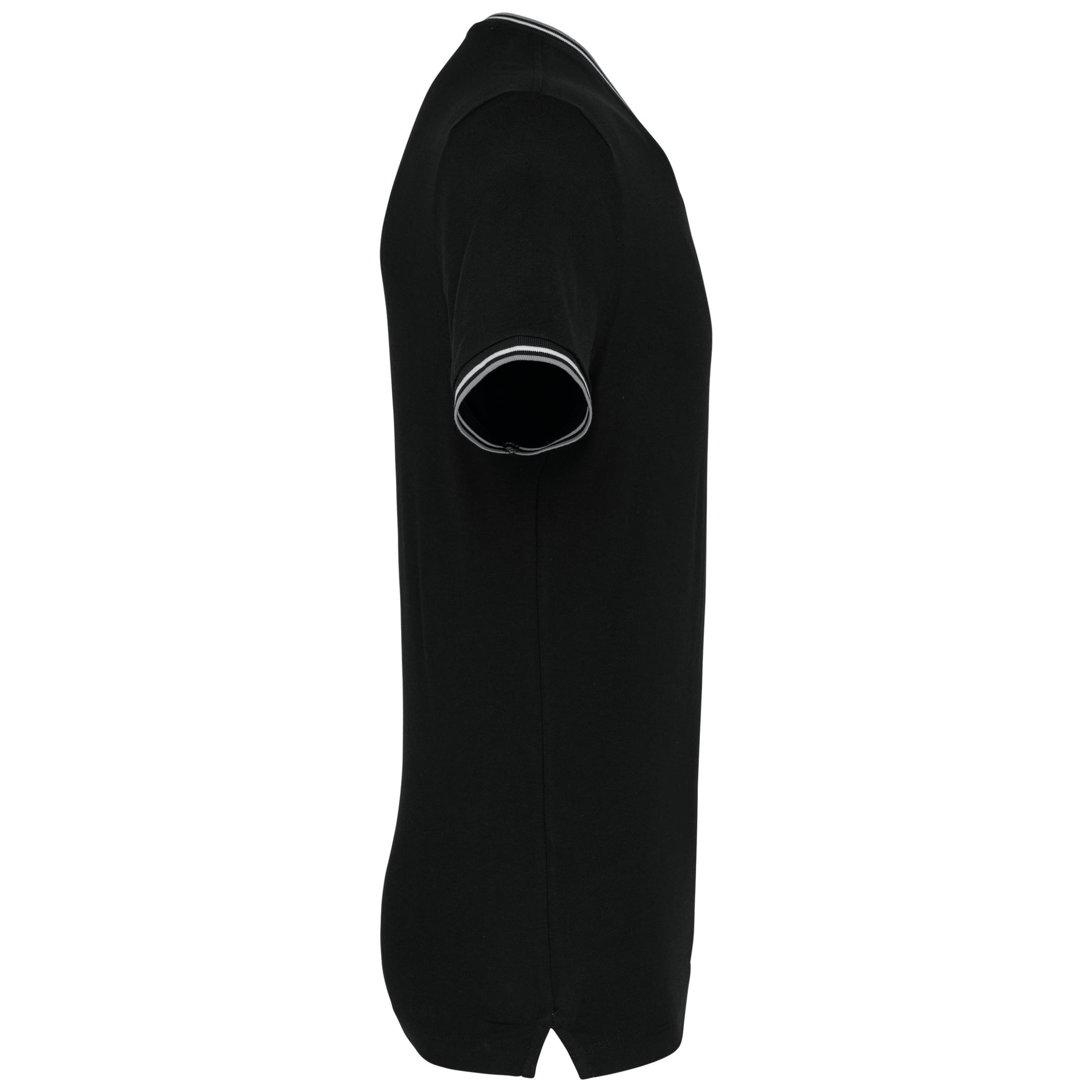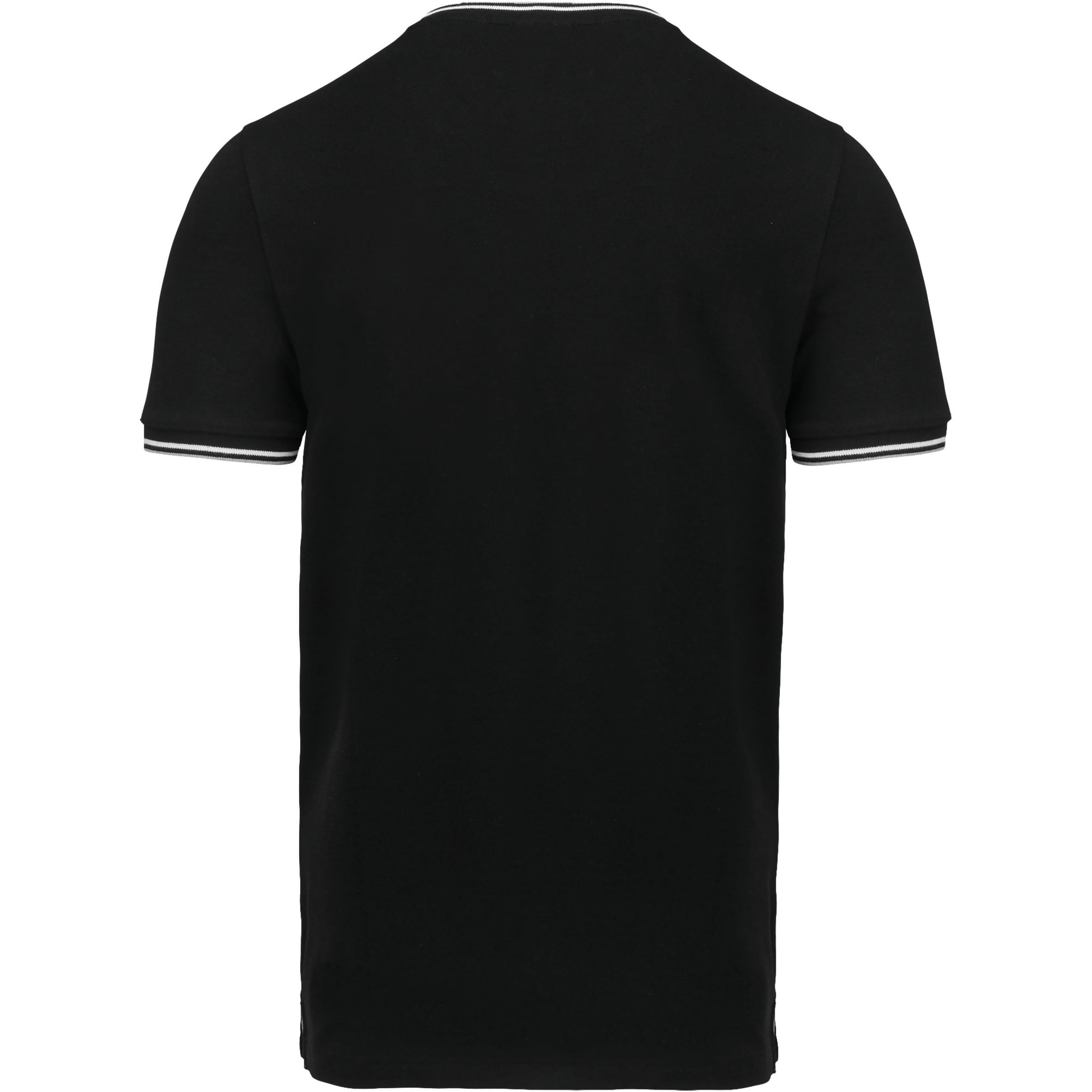 100% gekamd katoen piqué (Oxford Grey: 90% katoen / 10% viscose). Ribboord met contrasterende strepen aan de kraag en mouwuiteinden. Contrasterende zijsplitten en nektape in de kraag. Afwerking met dubbel stiksel onderaan. Gecertificeerd STANDARD 100 by OEKO-TEX® N° CQ 1007/7, IFTH.