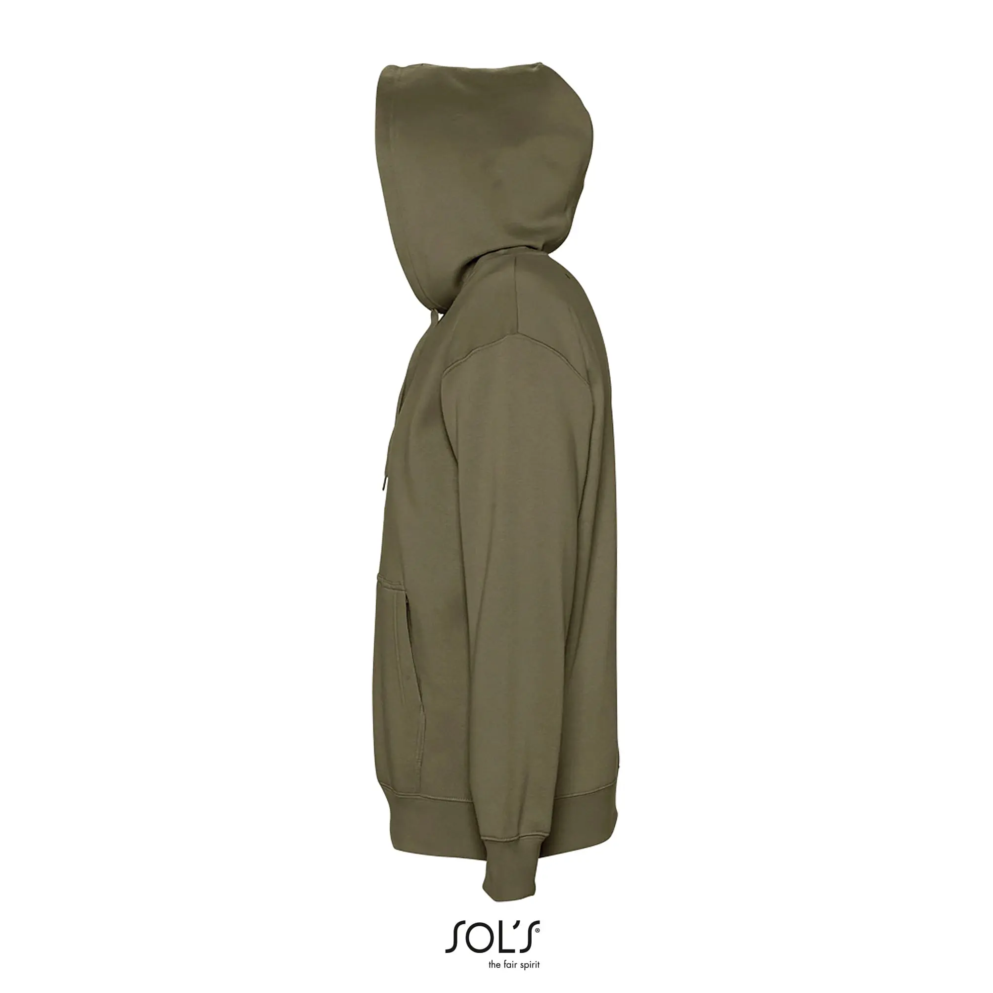 – Uniseks– Ringgesponnen katoen– Buisvormig– Geborsteld fleece voering– Rib manchetten en zoom– Versterkingstape in de nek– Kangoeroezakje– Capuchon met oogjes– Toon-op-toon trekkoord– 30°C wasbaar– Strijken toegelaten– Regular Fit– Binnen geruwd