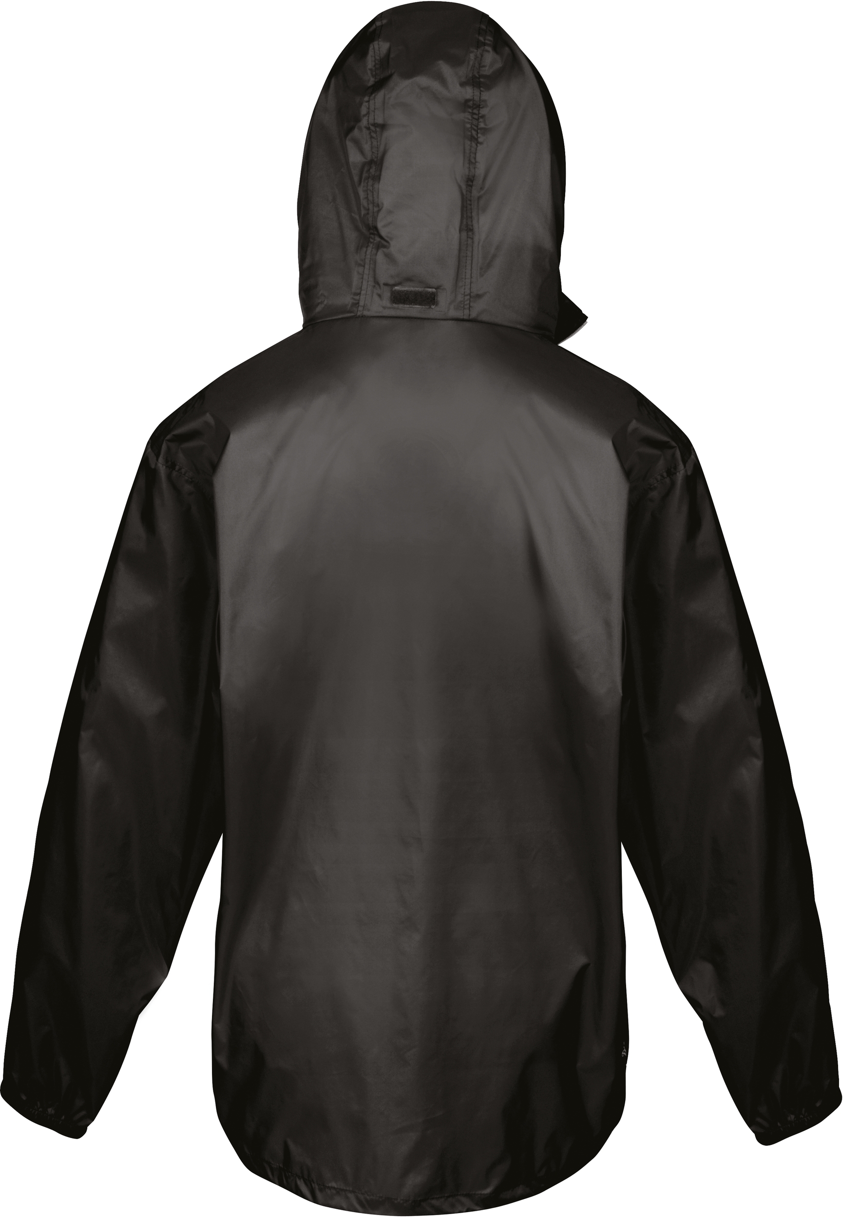 100% nylon. Winddicht, waterdicht tot 3.000mm en ademend 1000g/m²/24h. Licht. Volledige ritssluiting in contrastkleur. Getapete naden. Zijzakken (1 met ritssluiting). Elastische mouwuiteinden. Geïntegreerde elastische capuchon. Verstelbaar aanrijgkoord. Geprint label. Opvouwbaar in een meegeleverd opbergtasje.
