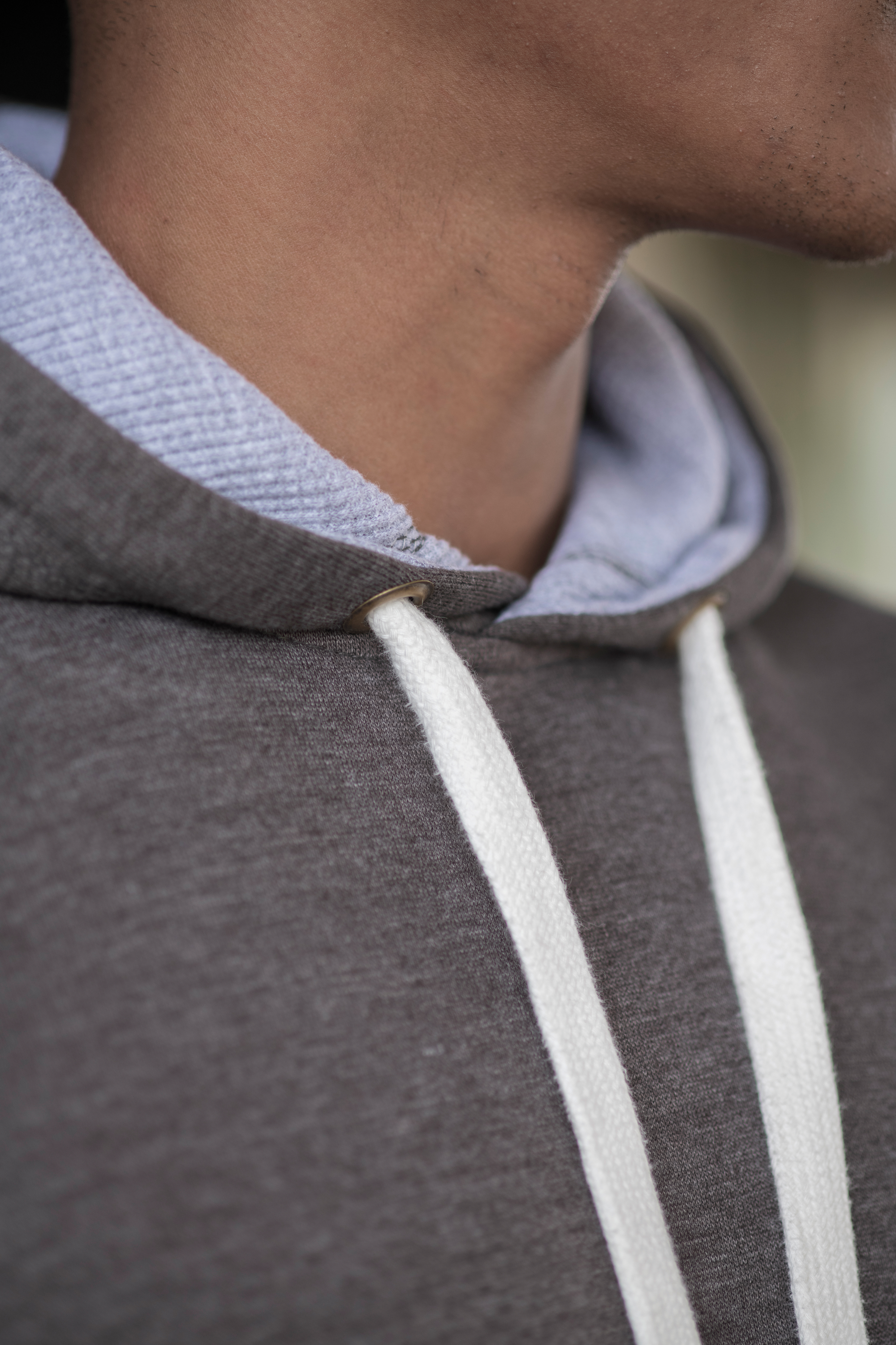 – Dubbele stoffen capuchon met heathergrijze wafelstof aan de binnenkant