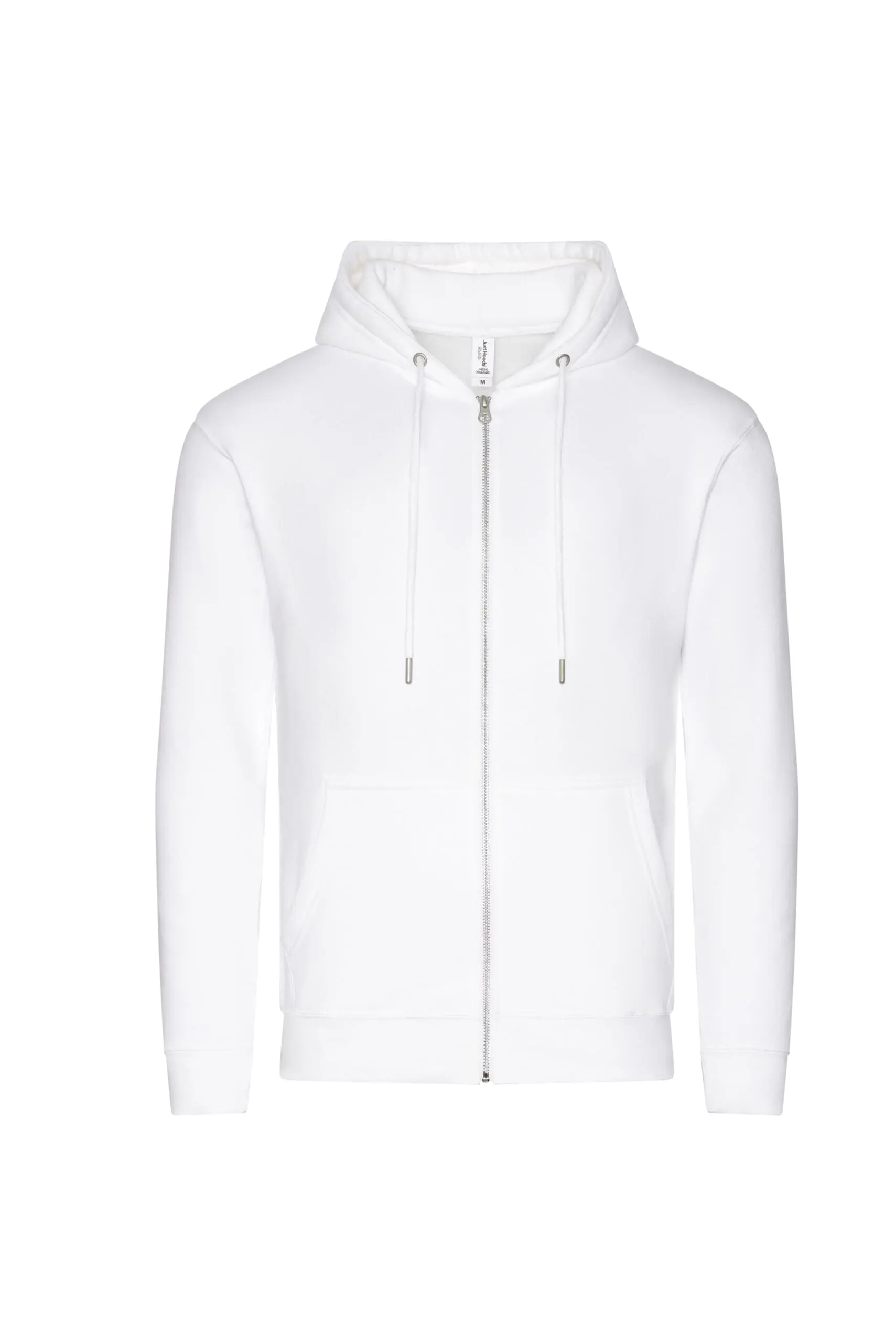 – Biologisch katoen / gerecycleerd polyester– Hoodie met volledige metalen rits YKK– Hoofdritssluiting bedekt met dezelfde stof– Tweedraads gestikte boord– Dubbellaags Capuchon– Zelfgekleurde koorden– Kangoeroezakzakken– Geborstelde fleece aan de binnenzijde– Geribbelde manchetten en zoom– Eenvoudig scheurlabel– Zachte katoenen stof zorgt voor een ideaal printoppervlak– 30°C wasbaar– Geschikt voor droogmachine– Strijken toegelaten