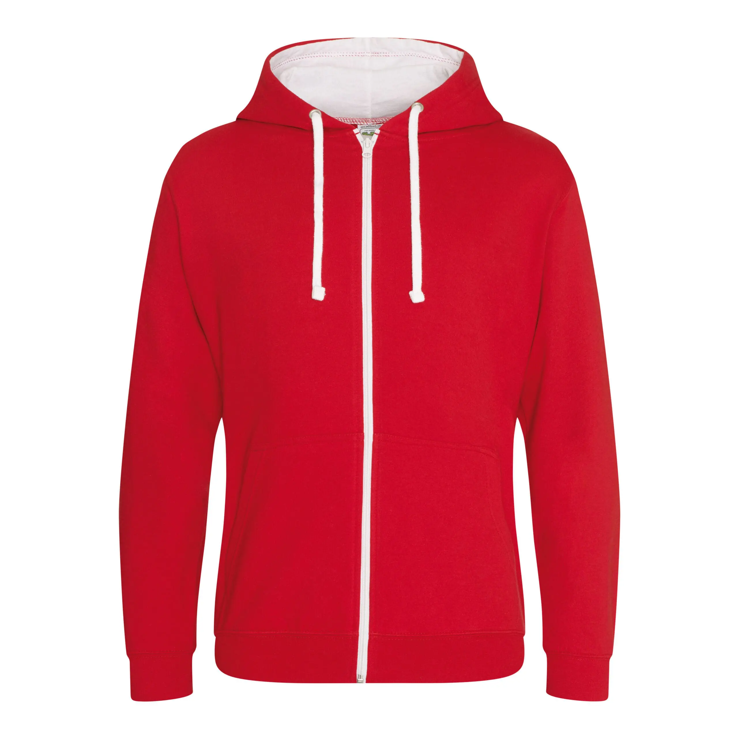 – Hoodie met volledige contrasterende kunststof rits– Dubbellaagse capuchon met contrastkleur binnenzijde en aantrekkoord– Met dubbele naald gestikte details– Binnenzijde opgeruwd– Kangoeroezak– Geborstelde fleece aan de binnenzijde– Contrasterende platte kanten trekkoorden– Geribbelde manchet en zoom– Eenvoudig afscheurbaar etiket– Zachte katoenen stof zorgt voor een ideaal printoppervlak– 30°C wasbaar– Geschikt voor droogmachine– Strijken toegelaten