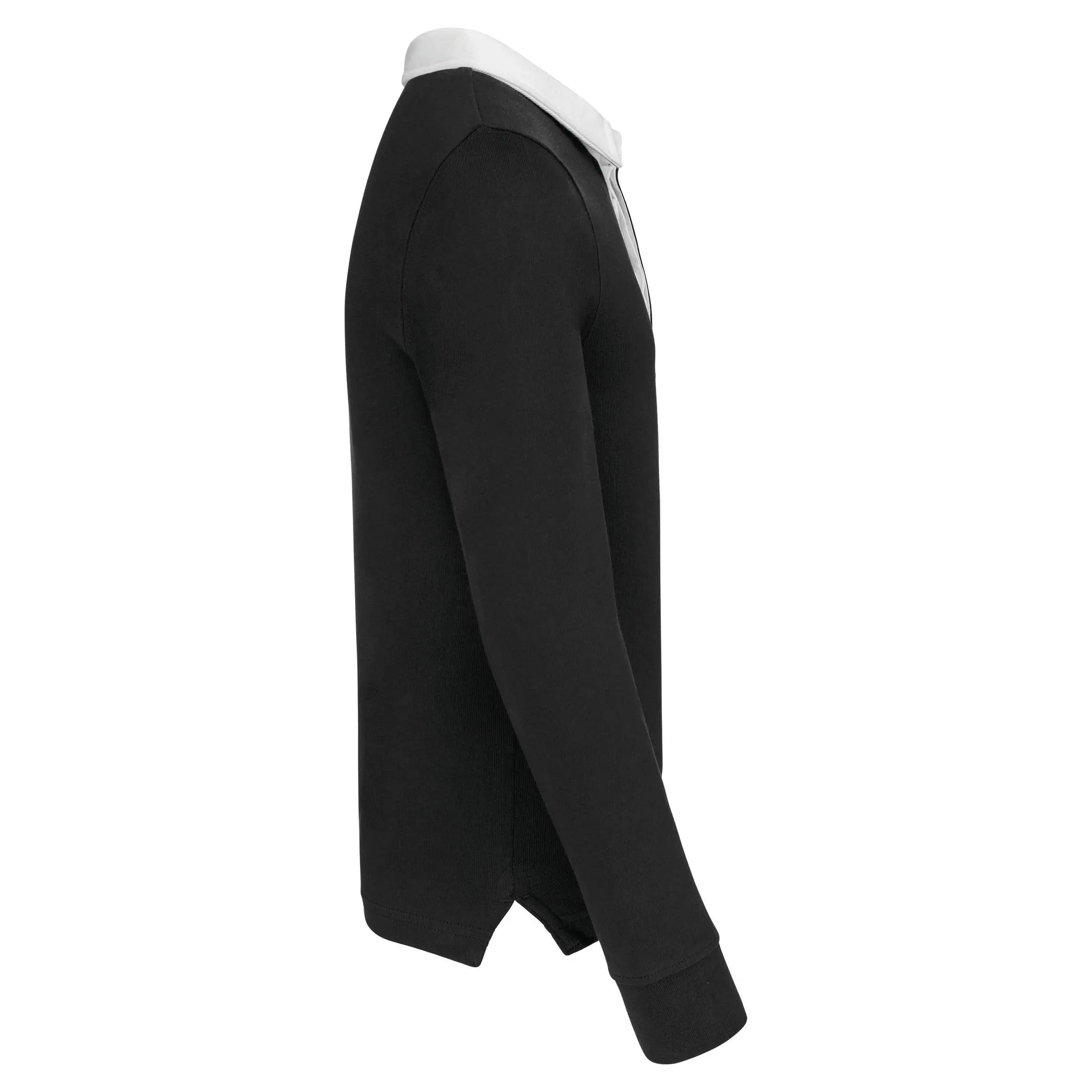 100% voorgekrompen gekamd jerseykatoen. Kraag in contrasterend wit twillkatoen (behalve de kleur Red, die een zwarte kraag heeft). Lijst met 3 knopen. Mouwuiteinden in 1×1 ribboord. Afwerking in visgraatmotief op de binnenzijde van de kraag en aan de zijkanten. Gecertificeerd STANDARD 100 by OEKO-TEX®N° CQ1007/7, IFTH.