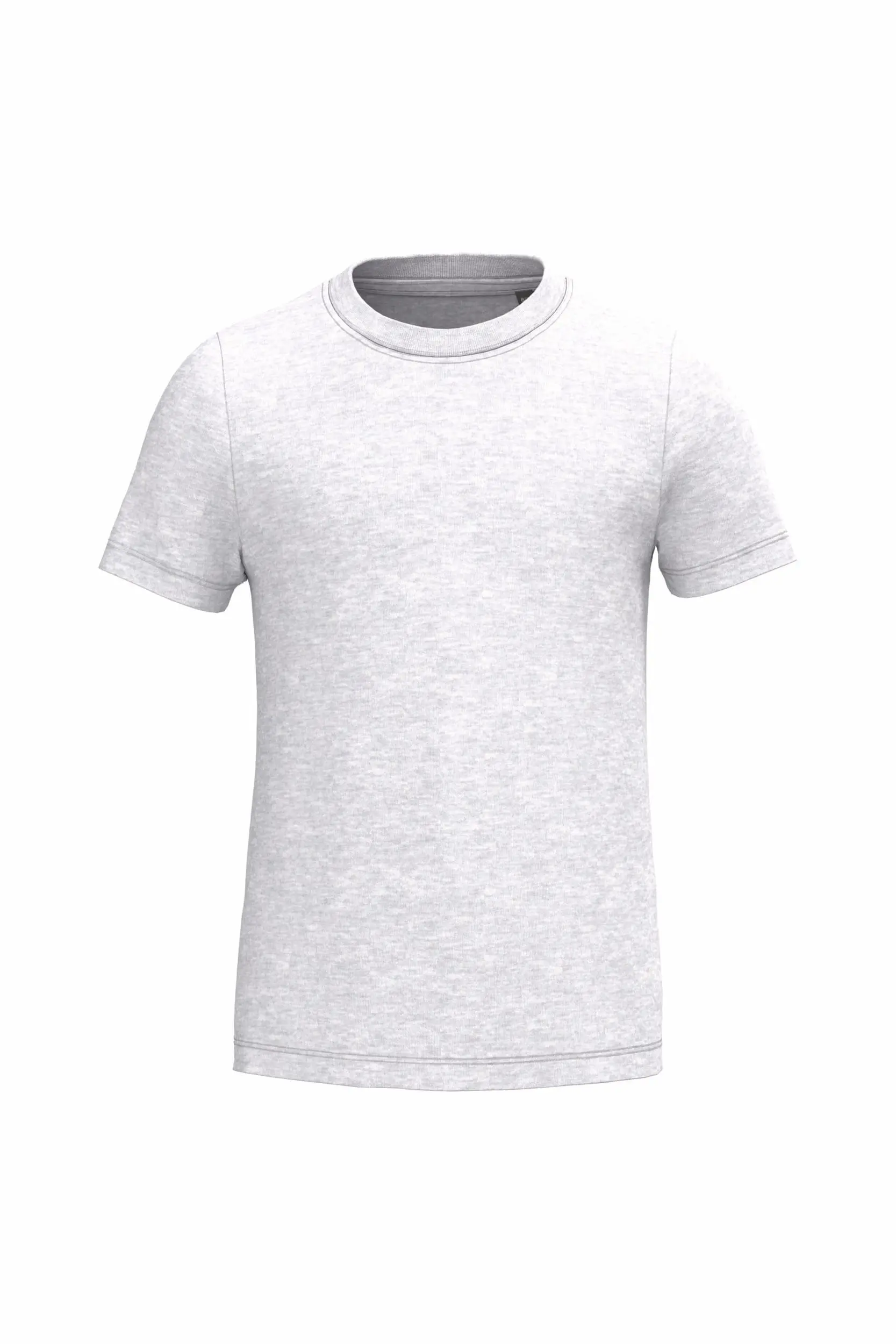 Effen kleuren : 100% katoen. Kleur Ash Heather 98% katoen / 2% viscose en Oxford Grey : 90% katoen / 10% viscose. Alle kleuren zijn gemaakt van biologisch katoen in omschakeling. Cut-and-sew-techniek. Ronde hals in ribboord en elasthan. Toon-op-toon nektape. Dubbel stiksel aan mouwuiteinden en onderkant. Gecertificeerd STANDARD 100 by OEKO-TEX®N° CQ1007/7, IFTH.
