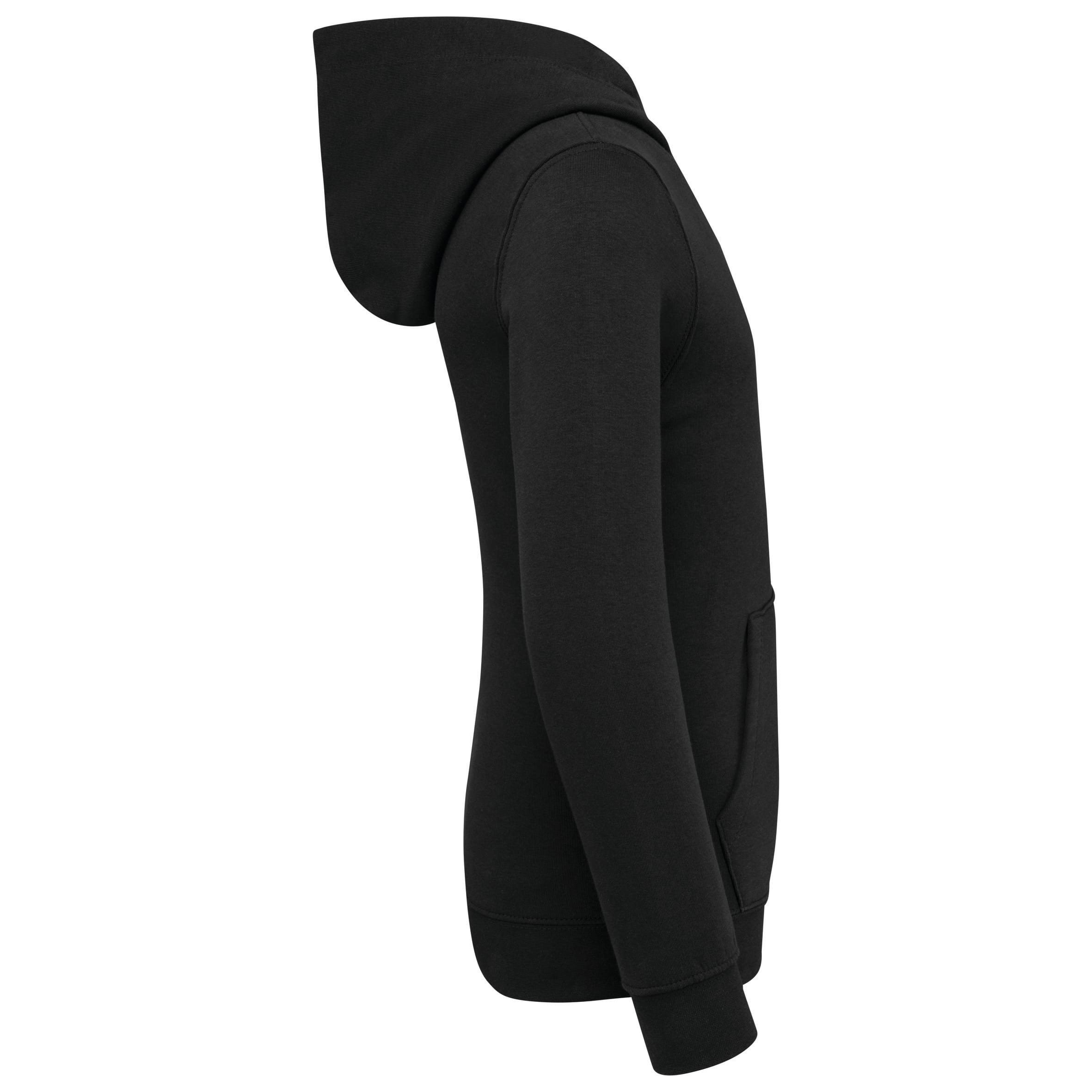 80% katoen / 20% polyester. Gekamd katoen. 3-laags LSF (Low Shrinkage Fleece) geborsteld fleece met behandeling tegen pluizen. Gemaakt in Portugal. Rechte snit. 1×1 ribboord aan de mouwuiteinden en de boord onderaan. Capuchon gevoerd met jerseykatoen. Dubbel stiksel op schouders, armsgaten, mouwuiteinden en boord. Nektape in bijpassende jersey in de kraag. Kangoeroezak. Halvemaanvormig inzetsel achteraan. Naamlabel in de kleding. Geen merklabel in de halsopening, enkel een maatlabel voor eenvoudige personalisatie.