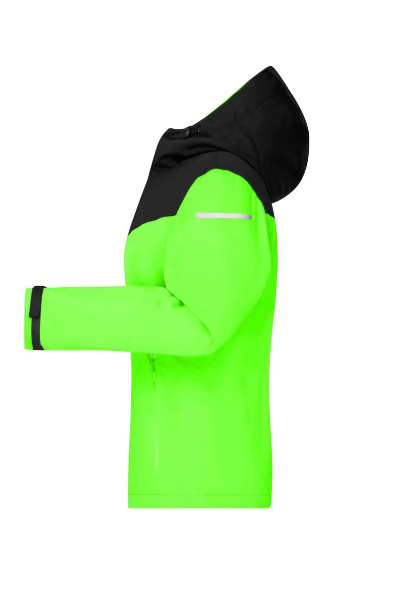 Lichte, gevoerde outdoor softshell-jas voor extreme weersomstandigheden– Functioneel materiaal van gerecycled polyester met TPU-membraan– Wind- en waterdicht (10.000 mm waterkolom)– Ademend en waterdampdoorlatend (5.000 g/m²/24 h)– Getapete naden, waterdichte ritsen– Licht gaas– Doorlopende verborgen 2-zijdige ritssluiting met kinbescherming– 2 zijzakken, 1 binnenzak– Volledig verstelbare capuchon– Klittenbandsluiting voor wijdteverstelling op mouwen– Ergonomische pasvorm, verlengd ruggedeelte– Modieuze reflecterende details op de mouwen en aan de achterkant– Rits voor decoratie aan de achterkant– JN1179: Licht getailleerd