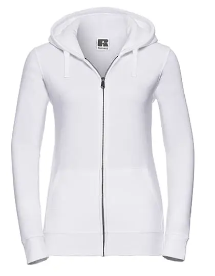 Hooded sweat jacket. 80% gekamd katoen, ringspun-20% polyester. Gewicht: 280 g/m². 3 lagen stof voor beter draagcomfort, buitenste laag is 100% katoen voor betere printbaarheid. Dubbele laag in capuchon met plat koord. Vrouwlijke vorm, bredere zoom, smallere schouders en mouwen, YKK rits, neck tape.