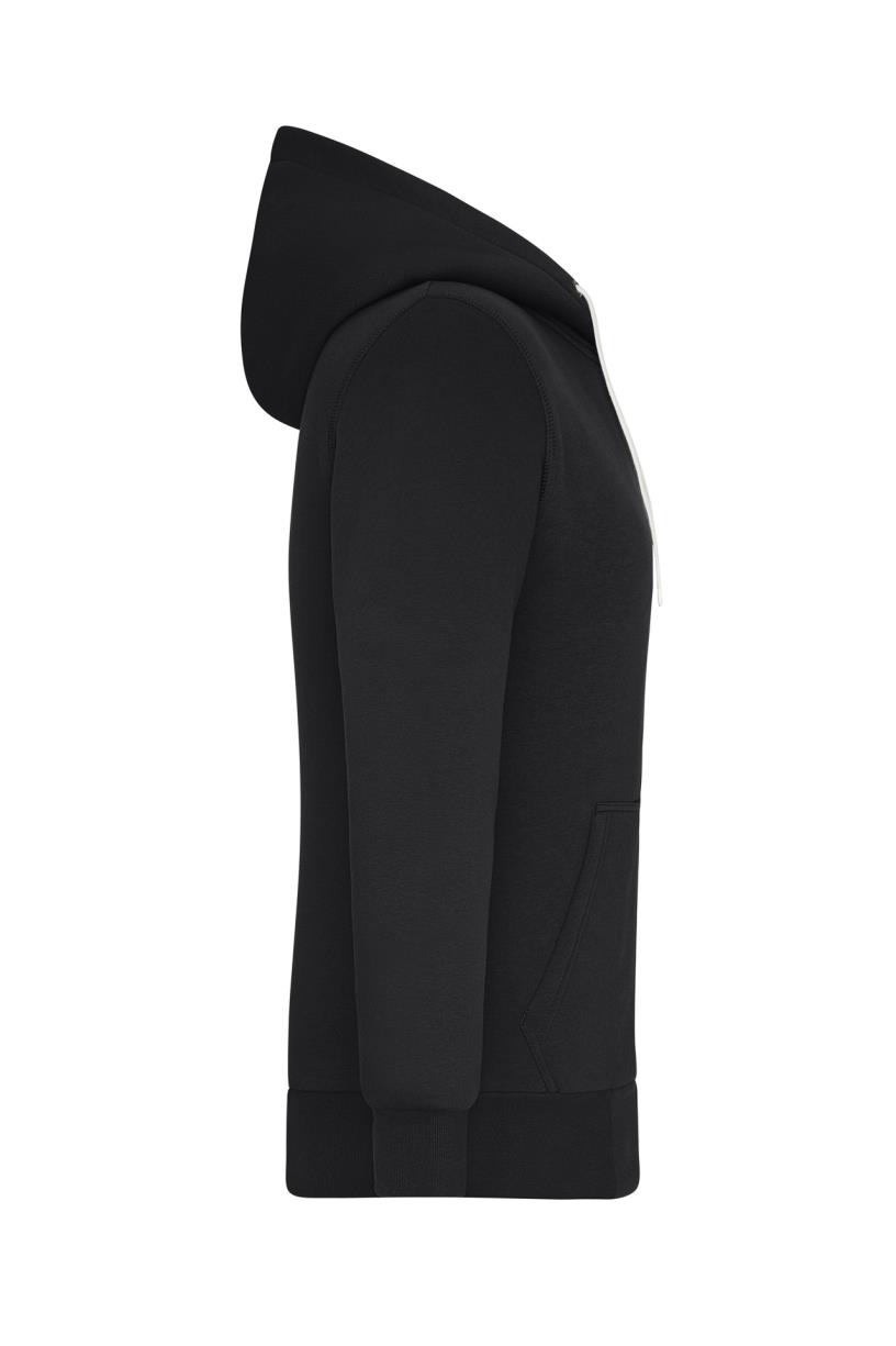 – Capuchon met trekkoord, contrasterende kleur ritssluiting