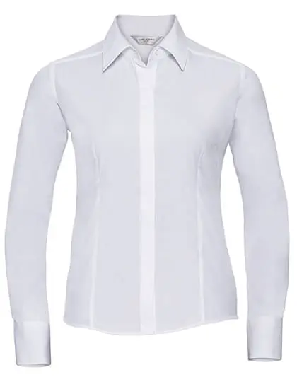 Shirt LSL. 65% polyester-35% katoen, poplin. Gewicht: Wit 110 g/m², Kleur 115 g/m². Easy care. Modern uitgesneden kraag. Ronde zoom. Verborgen knoopsluiting. Getailleerd model. Afgeronden manchetten met 2 knopen.