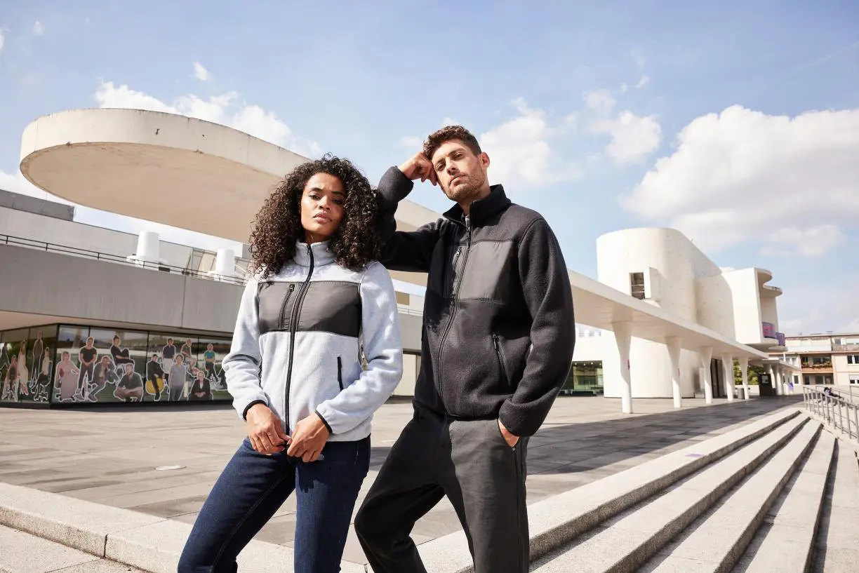 Fleecejack in materiaalmix– Klassieke, zachte en onderhoudsarme fleece van gerecycled polyester– Geweven versiering voor met borstzak– 2 zijzakken en 1 borstzak met ritssluiting– 2 binnenzakken– 2-wegritssluiting voor, opstaande kraag– JN1311: licht getailleerd– Ritssluitingen: YKK