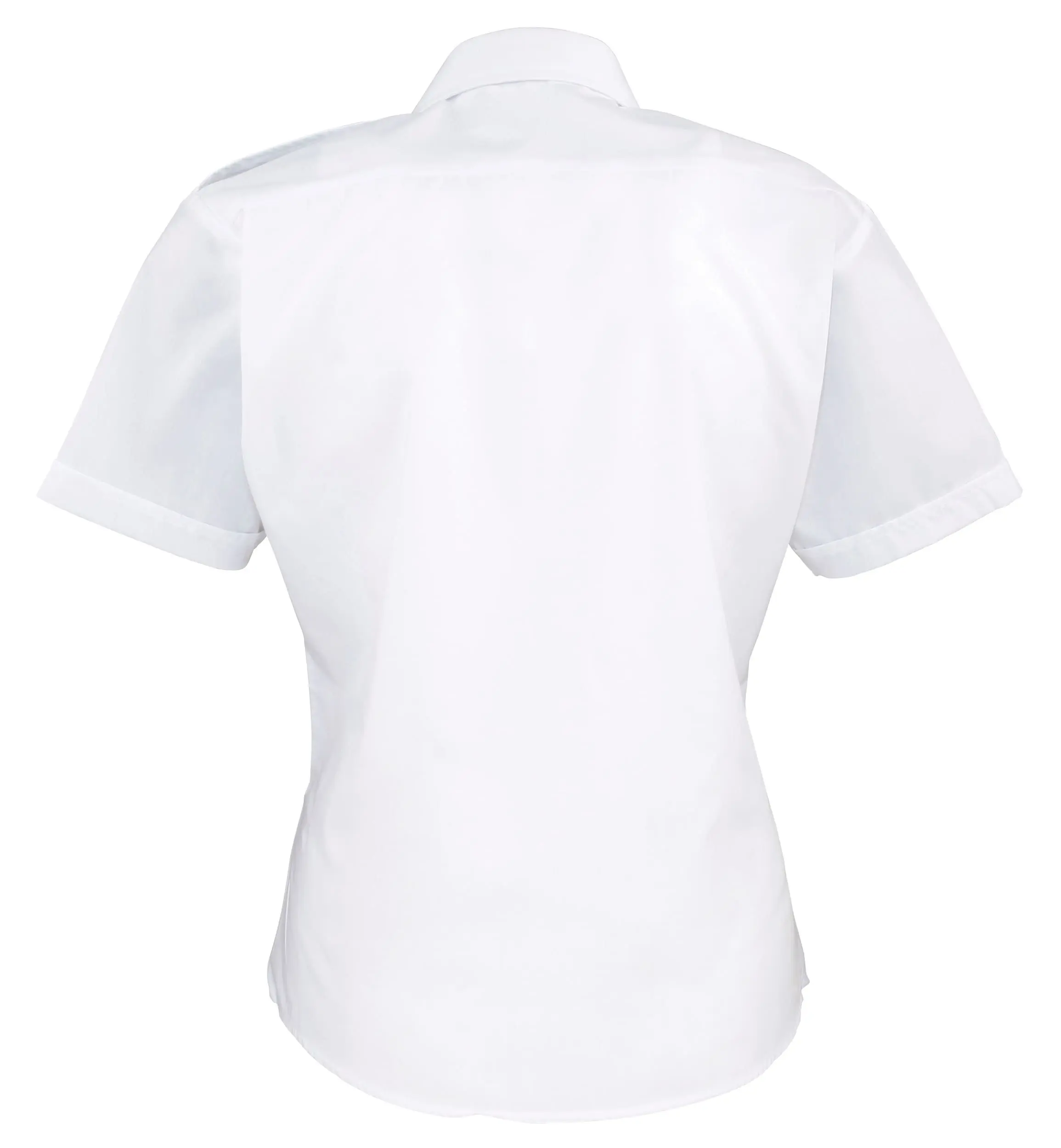 65% polyester / 35% katoen. Popline. Easy Care. Versterkte kraag. 2 borstzakken met overslag en knoopje + penhouder op de linkerzijde. Epauletten niet meegeleverd.