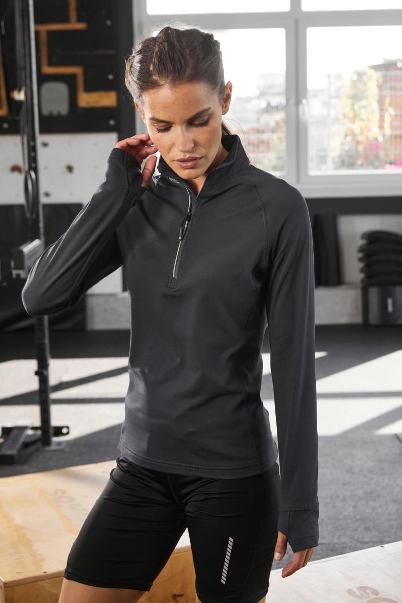 T-shirt met lange mouwen en rits voor sport en vrije tijd