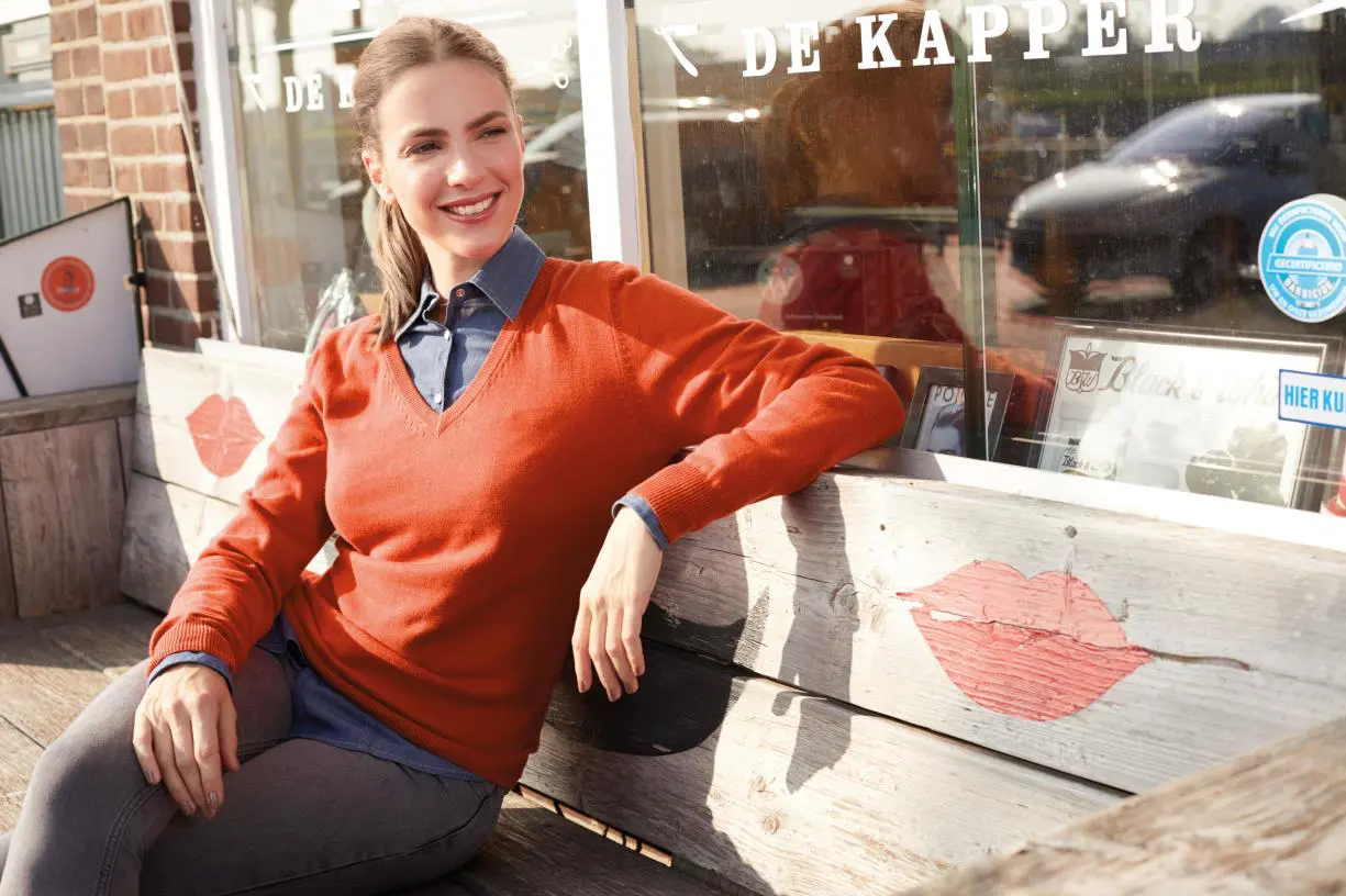 Klassieke katoenen pullover– Lichte gebreide stof– V-kraag– Wasbaar in wasmachine– JN658: getailleerde vorm