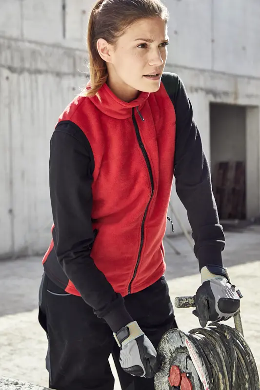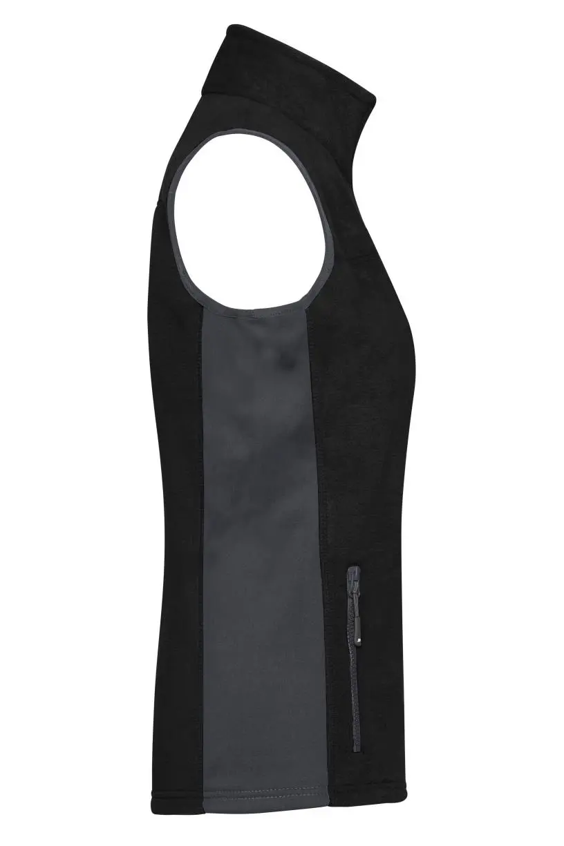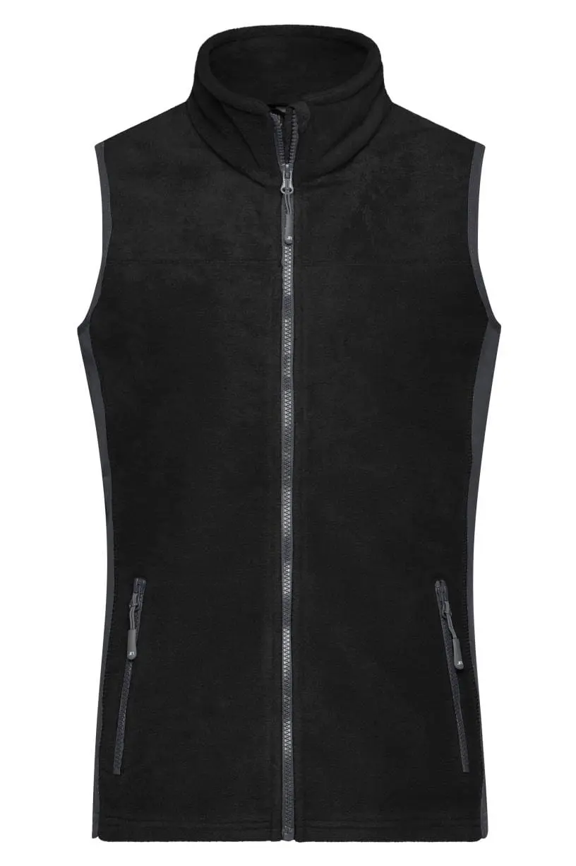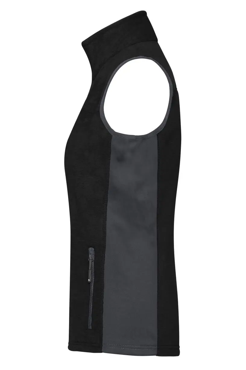 Duurzaam fleecevest in materiaalmix– Easy-care anti-pilling microfleece– Elastische softshell inzetstukken in contrasterende kleur aan de zijkant– Verborgen ritssluiting met kinbeveiliging– Opstaande kraag– 2 zakken met ritssluiting– JN855: licht getailleerd