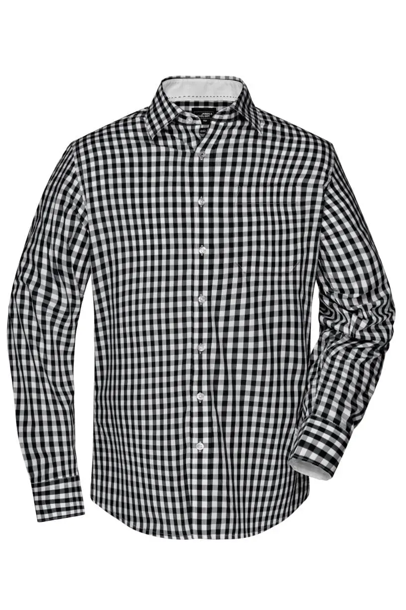 Modieus geruit shirt met uni-gekleurde inzetten op kraag en manchetten– Hoge kwaliteit poplinstof, gemakkelijk te strijken dankzij gebruiksvriendelijke finish– Ronde hem– JN617: klassieke snit, licht getailleerd, borstzak 13 x 15 cm, 2 teruggevouwen zijnaden– JN616: getailleerd, vrouwelijke snit