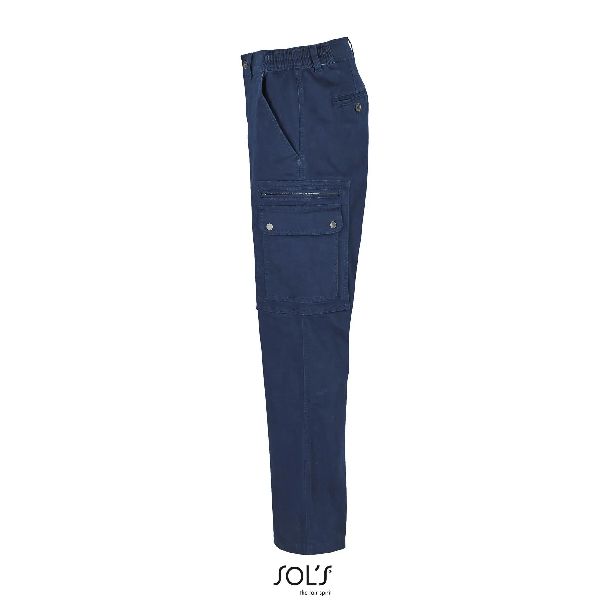 – Moderne snit– Stretch keperstof– Elastische taille met versterkte riemlussen– Ritssluiting en metalen knop– 2 Italiaanse zakken– 2 opgestikte zijzakken met flap en drukknopen– 2 paspelzakken achter met knoopsgat– 1 kaartvakje– Afscheurbaar label– 40 °C wasbaar– Strijken toegelaten– Lange broek– Stretch