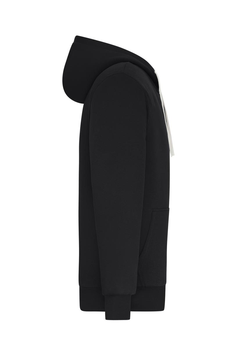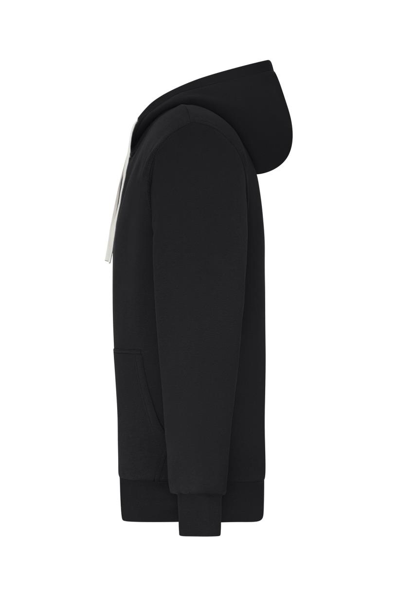 – Capuchon met trekkoord, contrasterende kleur ritssluiting
