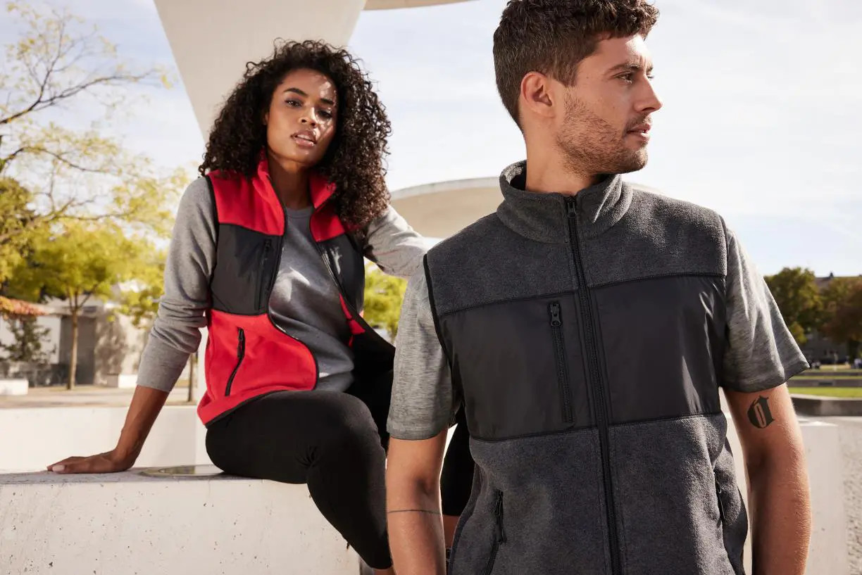 Fleecevest in materiaalmix– Klassieke, zachte en onderhoudsarme fleece van gerecycled polyester– Geweven versiering voor met borstzak– 2 zijzakken en 1 borstzak met ritssluiting– 2 binnenzakken– 2-wegritssluiting voor, opstaande kraag– JN1309: licht getailleerd– Ritssluitingen: YKK