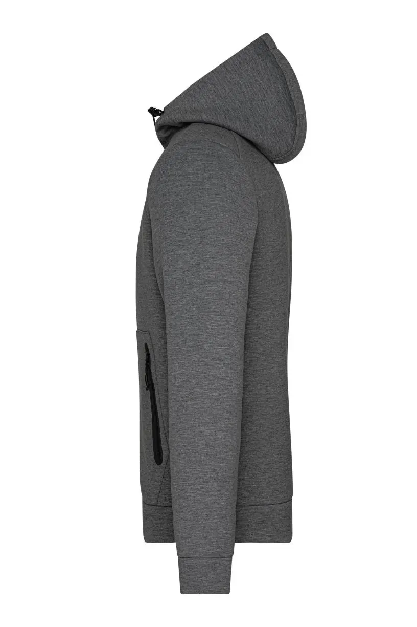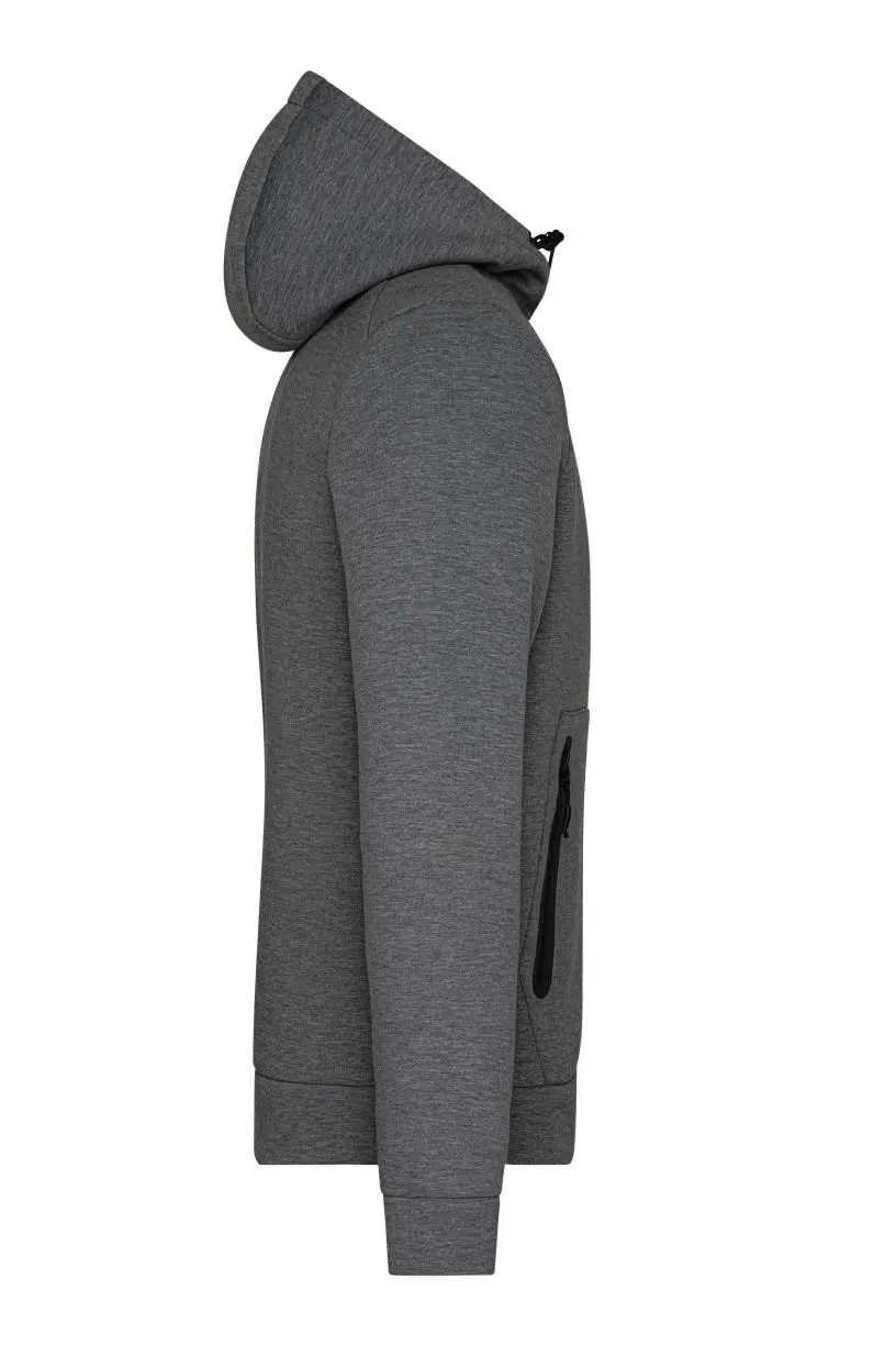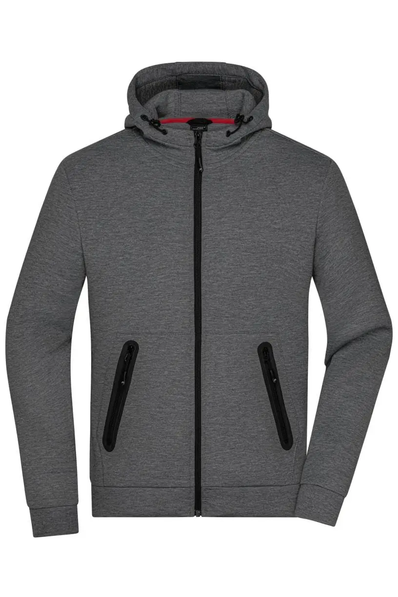 Jas met capuchon en modieuze details in melange look– Aangename, elastische kwaliteit– Verstelbare capuchon– Opgenaaide kangoeroezak met rits– Zips: YKK– Casual snit– JN1143: licht getailleerd
