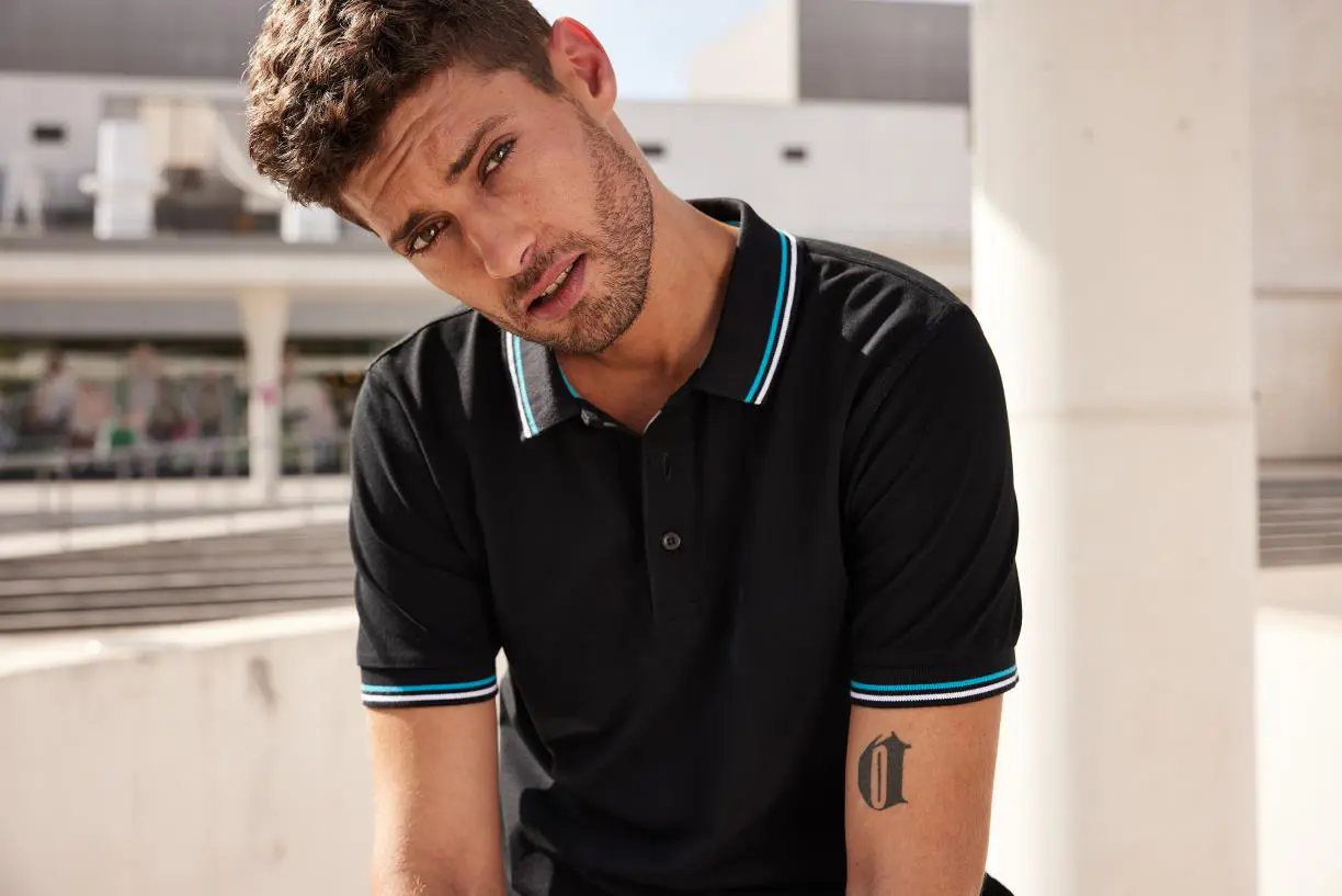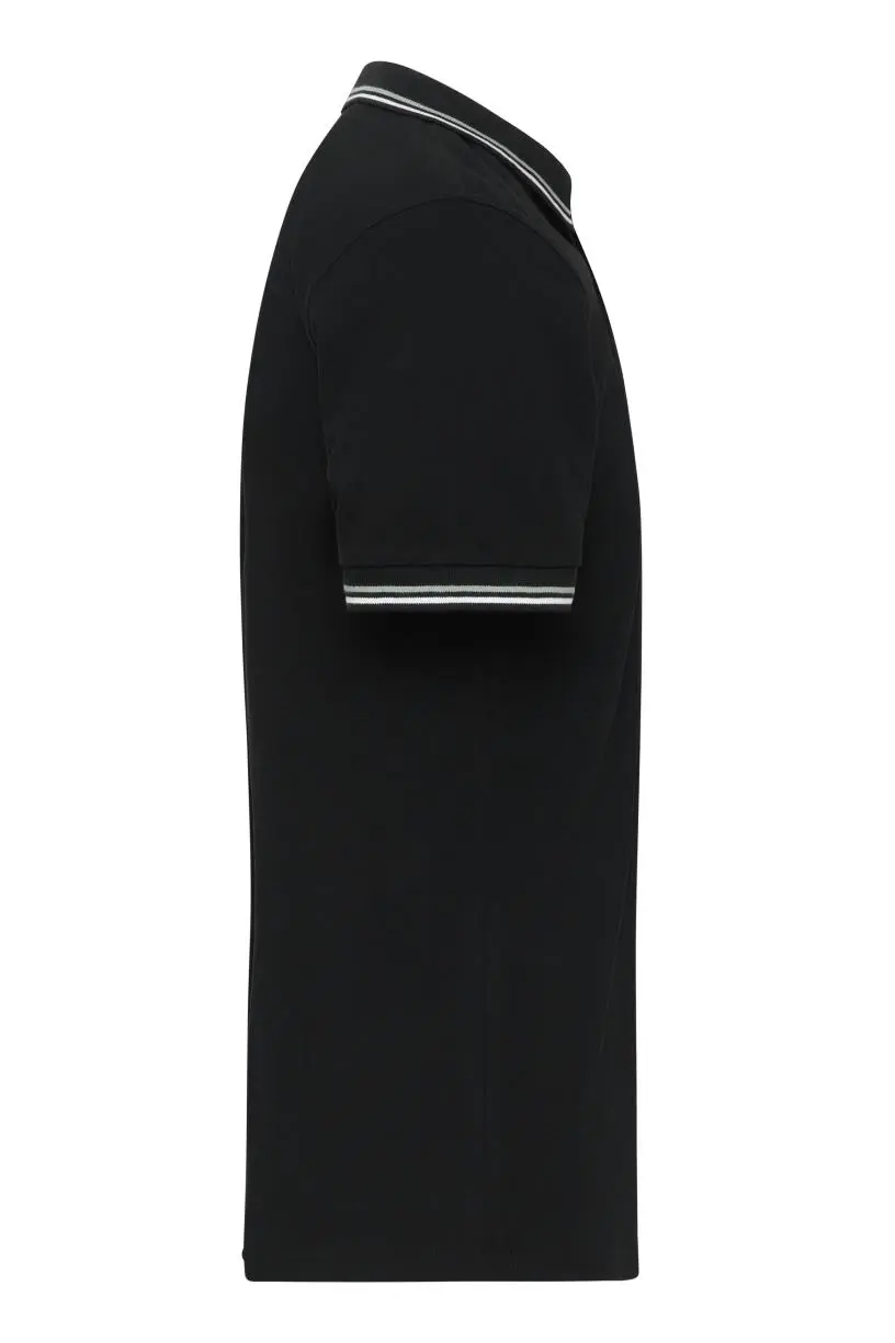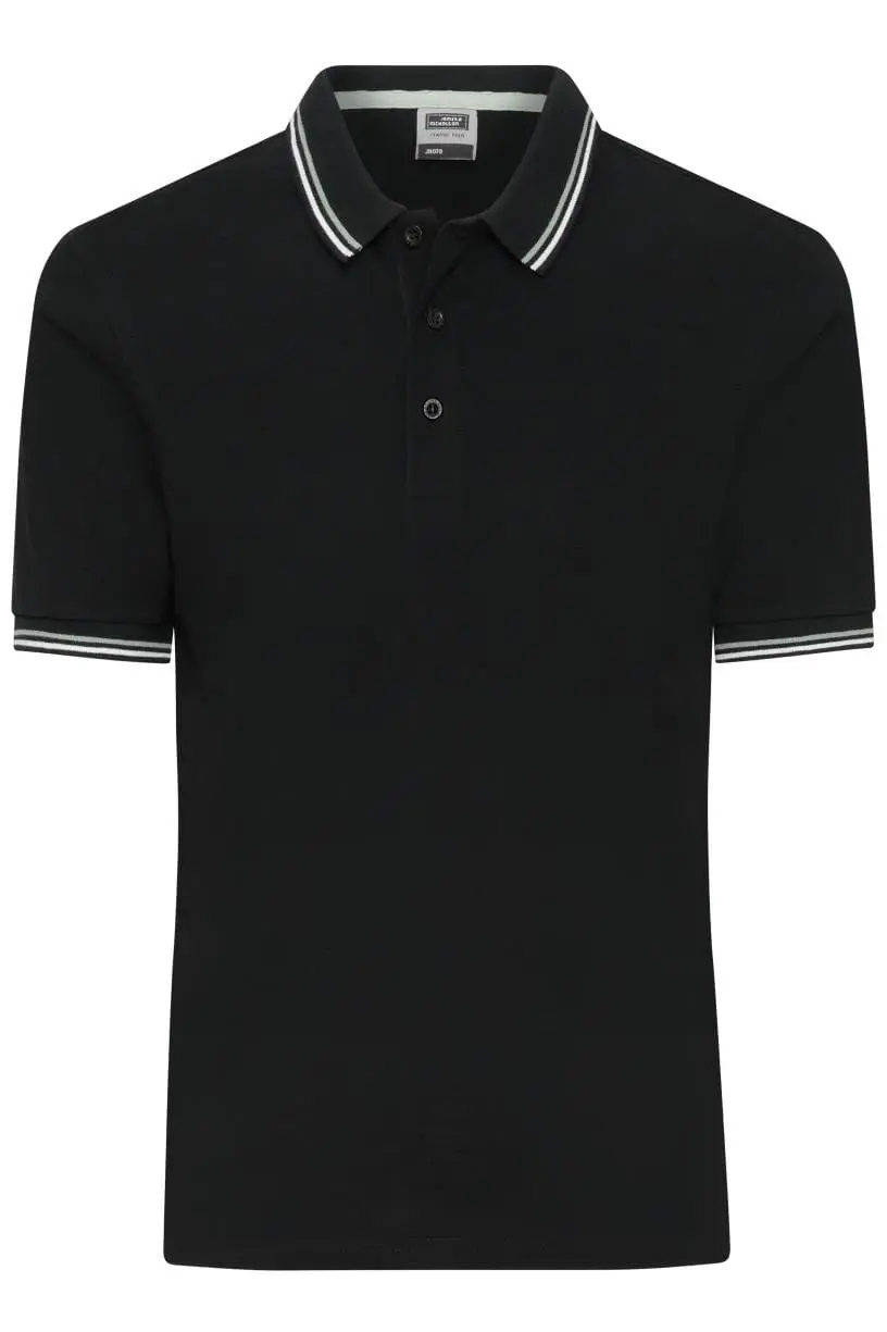Klassieke polo met contraststreep op kraag en mouwboordjes van piquĂ©– Gekamd, ringgesponnen katoen– Gebreide polokraag en mouwboordjes– Knopen ton-sur-ton, neklint in contrastkleur– JN1305: 5 knopen, getailleerd model– JN1306: 3 knopen