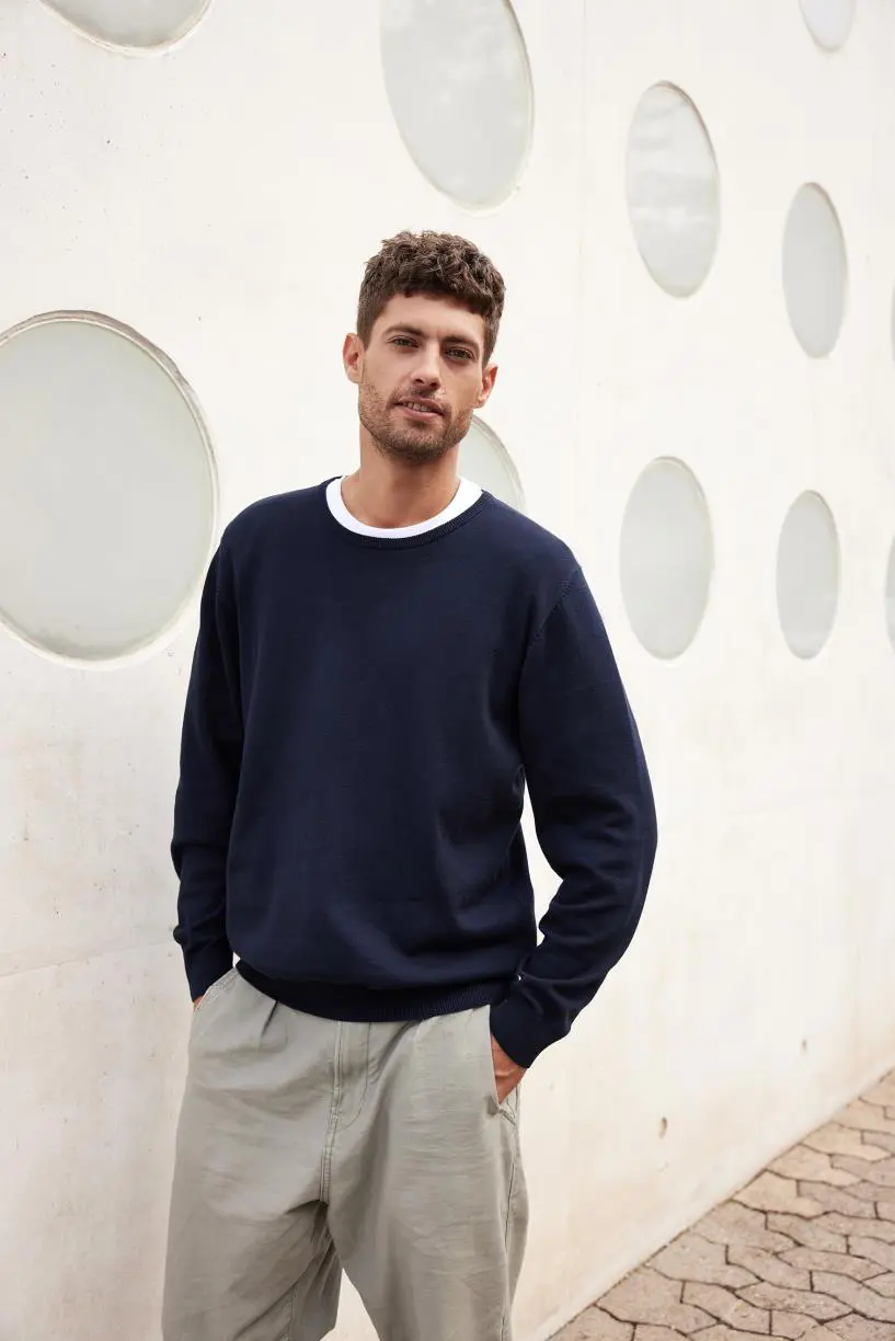 Klassieke pullover van katoen– Licht tricot– Ronde hals– Machinewas– JN1313: getailleerd model