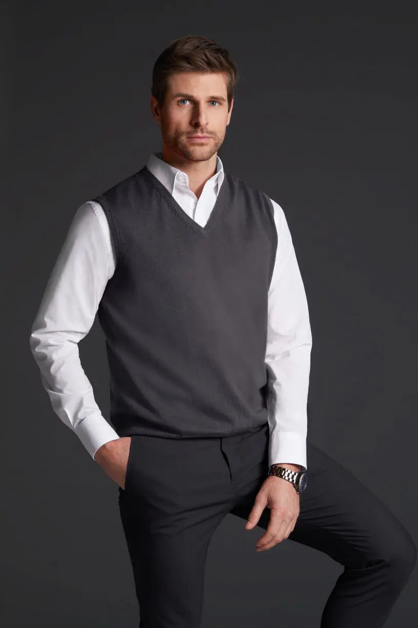 Klassieke katoenen mouwloze pullover– Lichte gebreide stof– V-kraag– Wasbaar in wasmachine– JN656: getailleerde vorm