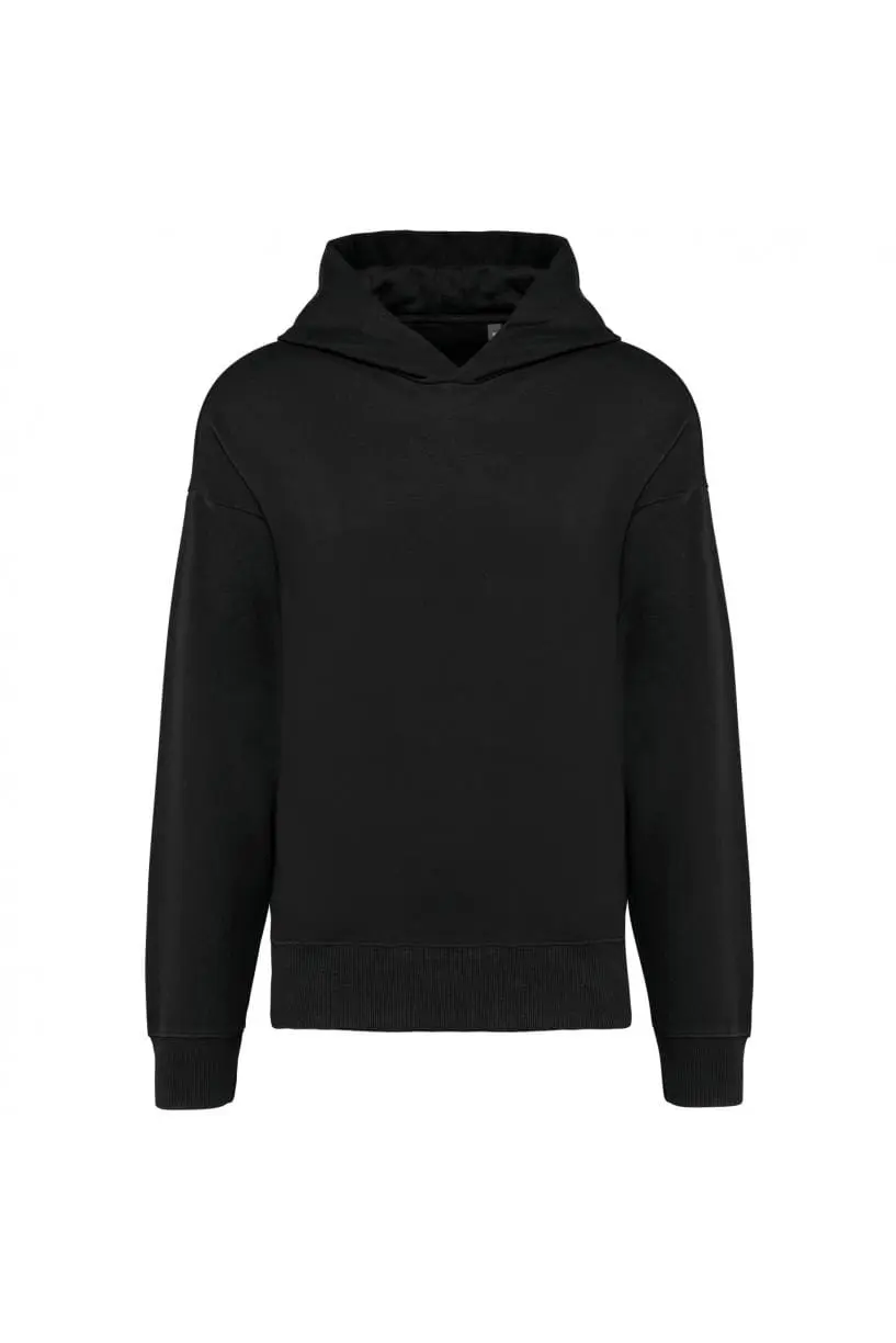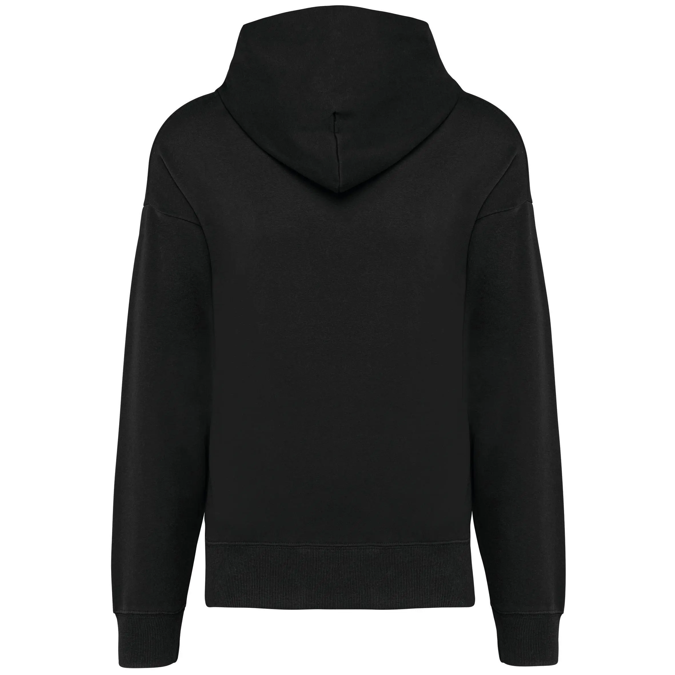80% katoen / 20% polyester. Oversized model met afhangende schouders. Geborsteld fleece aan de binnenkant. Gekaard katoen. 2×1 ribboord in buisconstructie voor een betere afwerking aan de mouwuiteinden en de onderkant. Verborgen zak met blinde rits in de zijnaad rechts (wanneer gedragen). Gevoerde katoenen capuchon met plooi. In de ribboord aan de mouwuiteinden en onderaan zit elasthaan om vervorming van het kledingstuk te voorkomen. Toon-op-toon nektape met visgraatmotief. Halvemaan in de kraag. Dubbel stiksel aan weerszijden, op de mouwuiteinden en onderaan. Geen merklabel, maar een maatlabel in de kraag voor eenvoudige personalisatie.