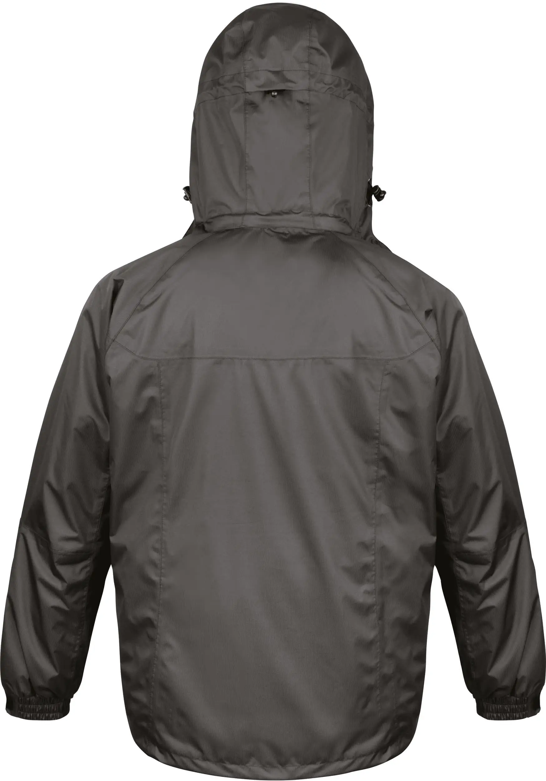 Buitenjas 100% ripstoppolyester met een voering van 100% polyester, windbreaker, waterdicht 3000 mm en ademend 3000 g/m²/24 u. Getapete naden. Binnenjas 100% softshell-polyester 2 lagen (280 g/m²), met een ritssysteem vastgemaakt aan de buitenjas. Buitenjas: Ritssluiting met dubbele schuiver. Dubbele stormoverslag met drukknopen. 2 zijzakken en 1 borstzak met ritsen. Elastische mouwuiteinden met klittenbandsluiting. Gevoerde, afneembare en aanpasbare capuchon met reflecterend detail bovenaan. De onderzijde van de jas is regelbaar met aanrijgkoordjes. Binnenkraag in ribboord. Binnenjas Softshell: Ritssluiting over de hele lengte. 2 zijzakken en 1 binnenzak. Zoomafwerking aan de mouwen.