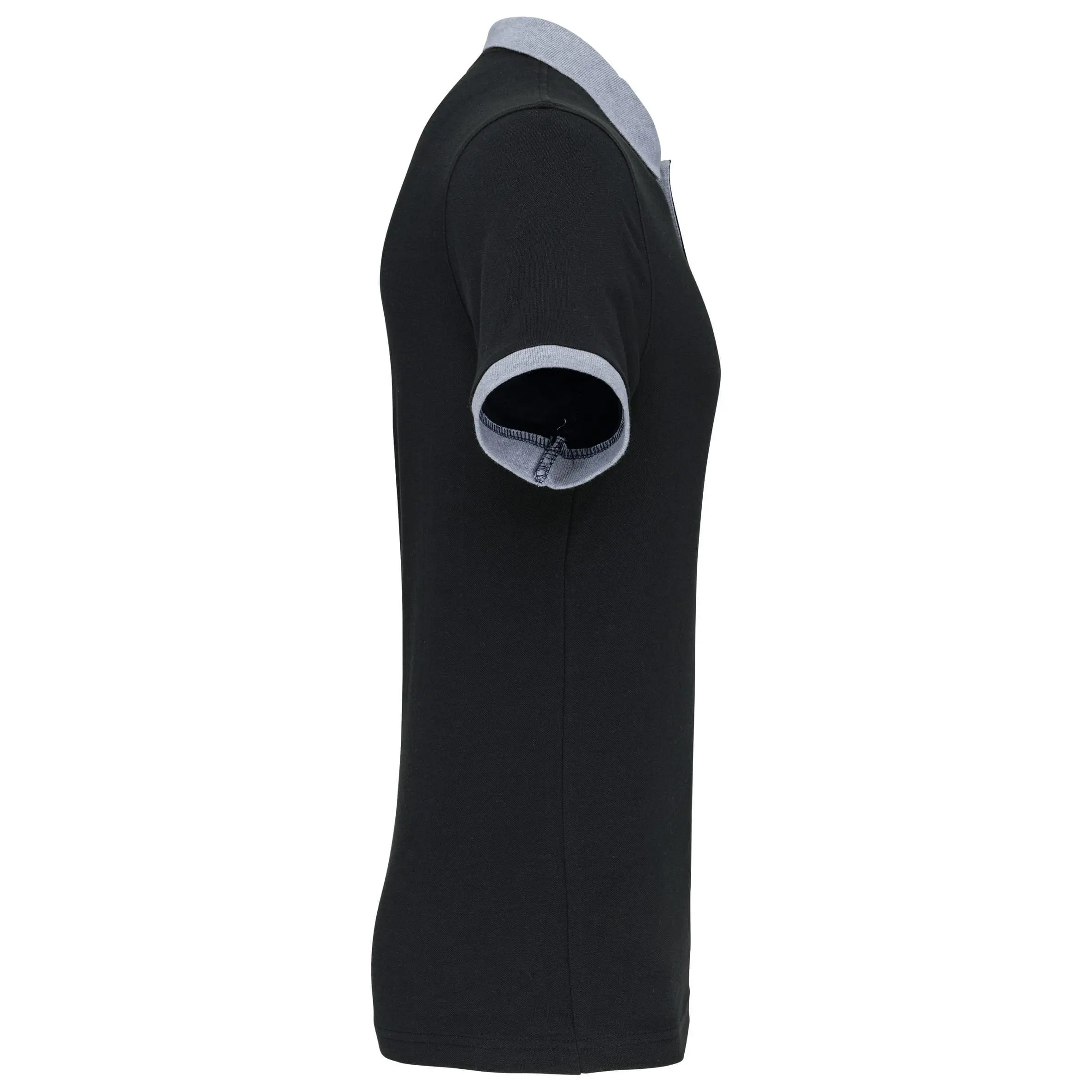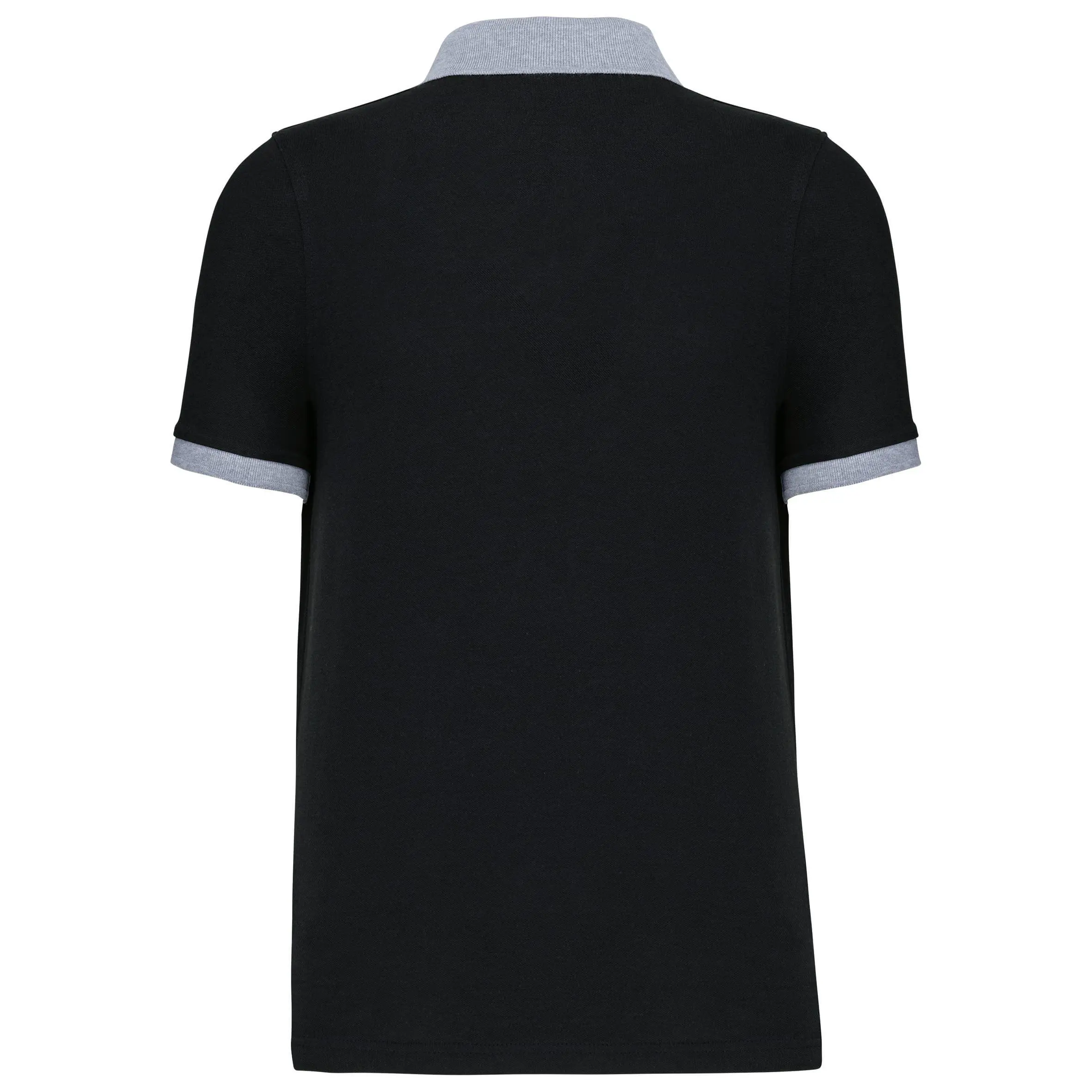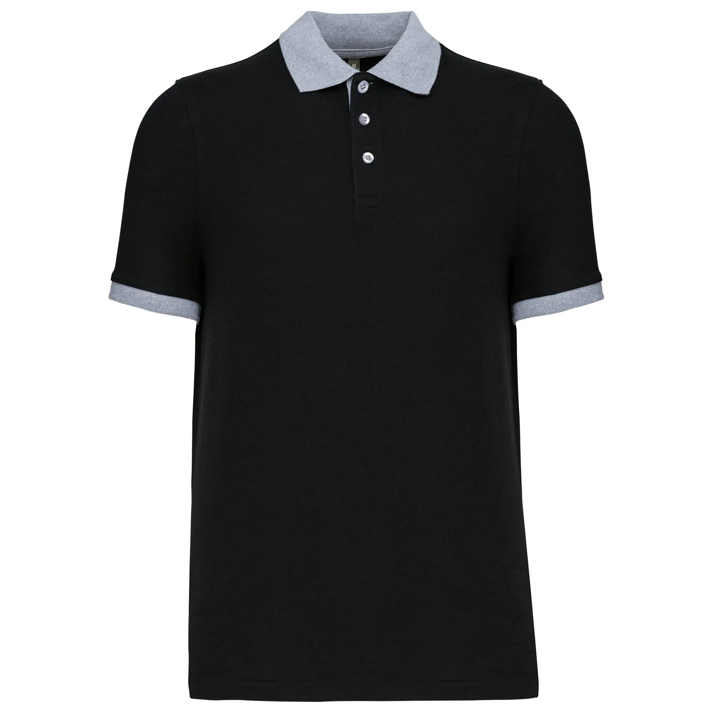 100% voorgekrompen katoen piqué (Oxford Grey: 90% katoen / 10% viscose). Contrasterende ribboord aan de kraag en mouwuiteinden. Contrasterende nektape. Aan de binnenzijde een contrasterende knooplijst met 3 knopen. Afwerking met dubbel stiksel onderaan.