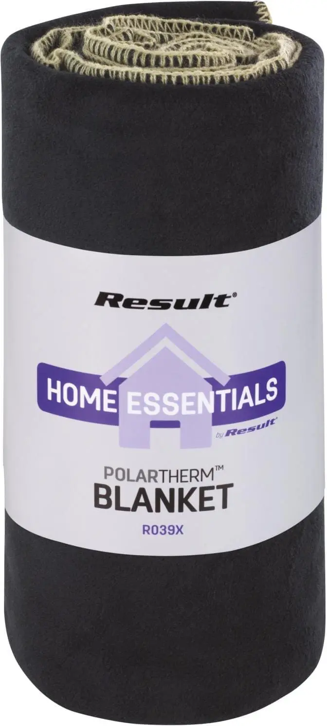 100% polyester fleece. Afgeboord met beige stiksel. Polartherm™ super warm fleecedeken. Result® geprint op de verpakking.