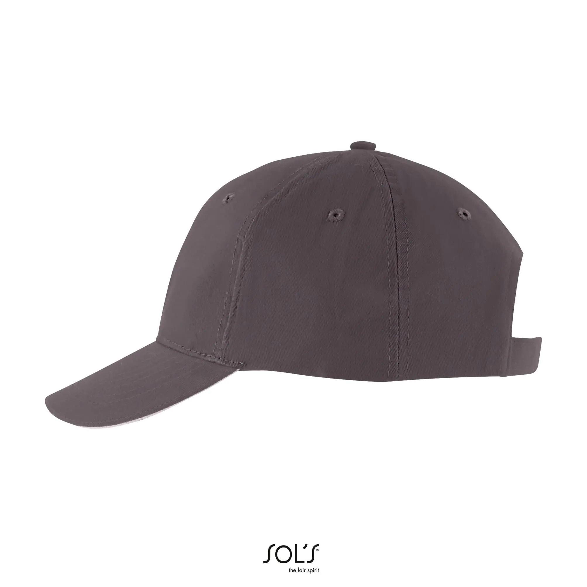 – Twill, 100% licht geborsteld katoen– Zes panelen– Voorgebogen piek met sandwichoptie– 6 geborduurde oogjes– Verstelbare zelfgrijpende rugsluiting– Niet wasbaar
