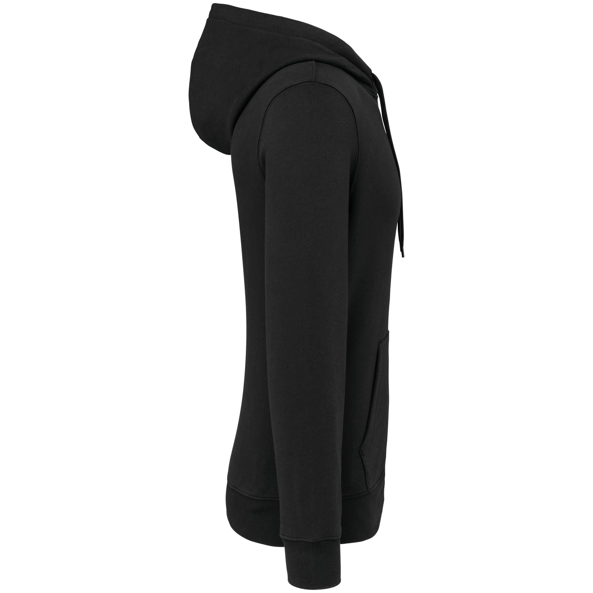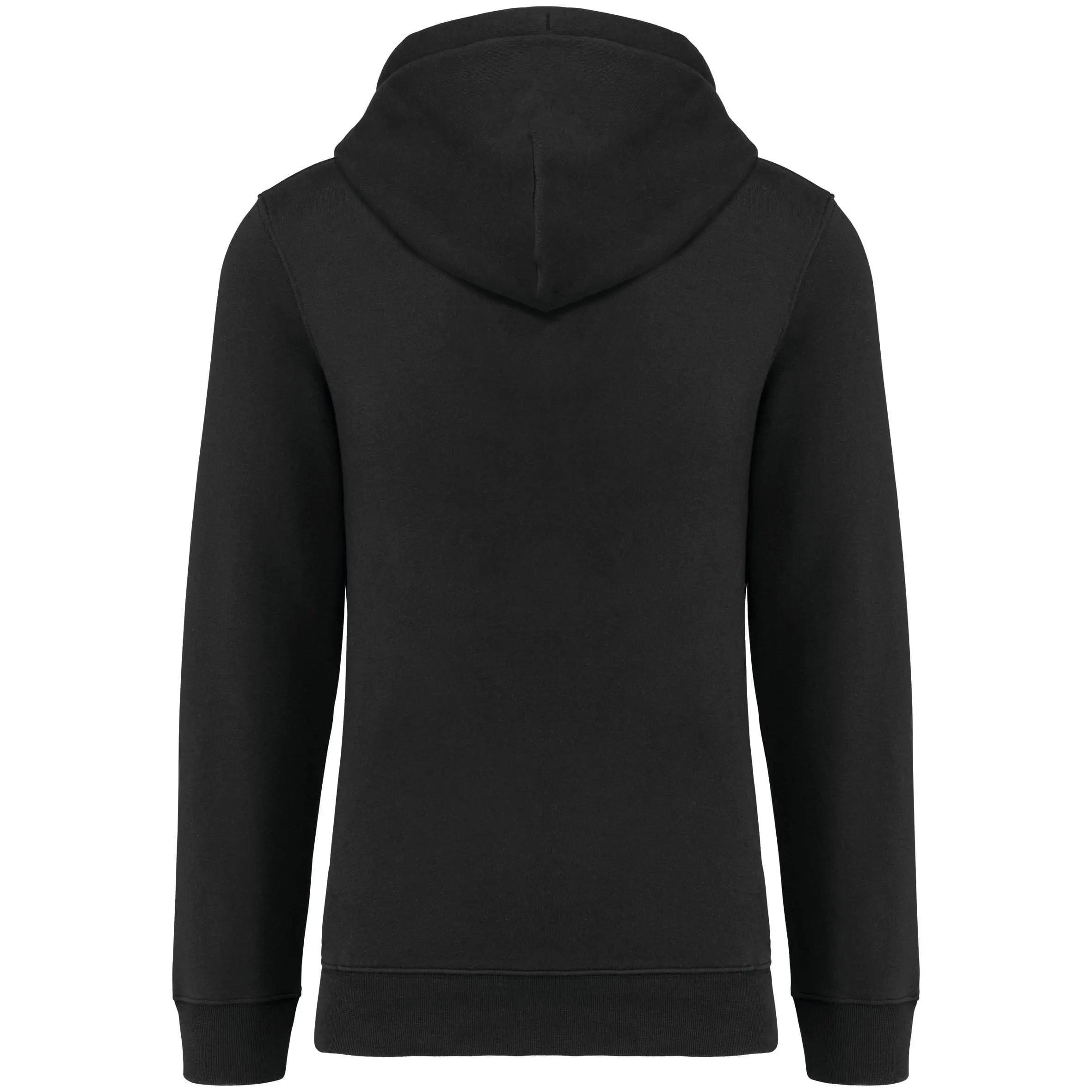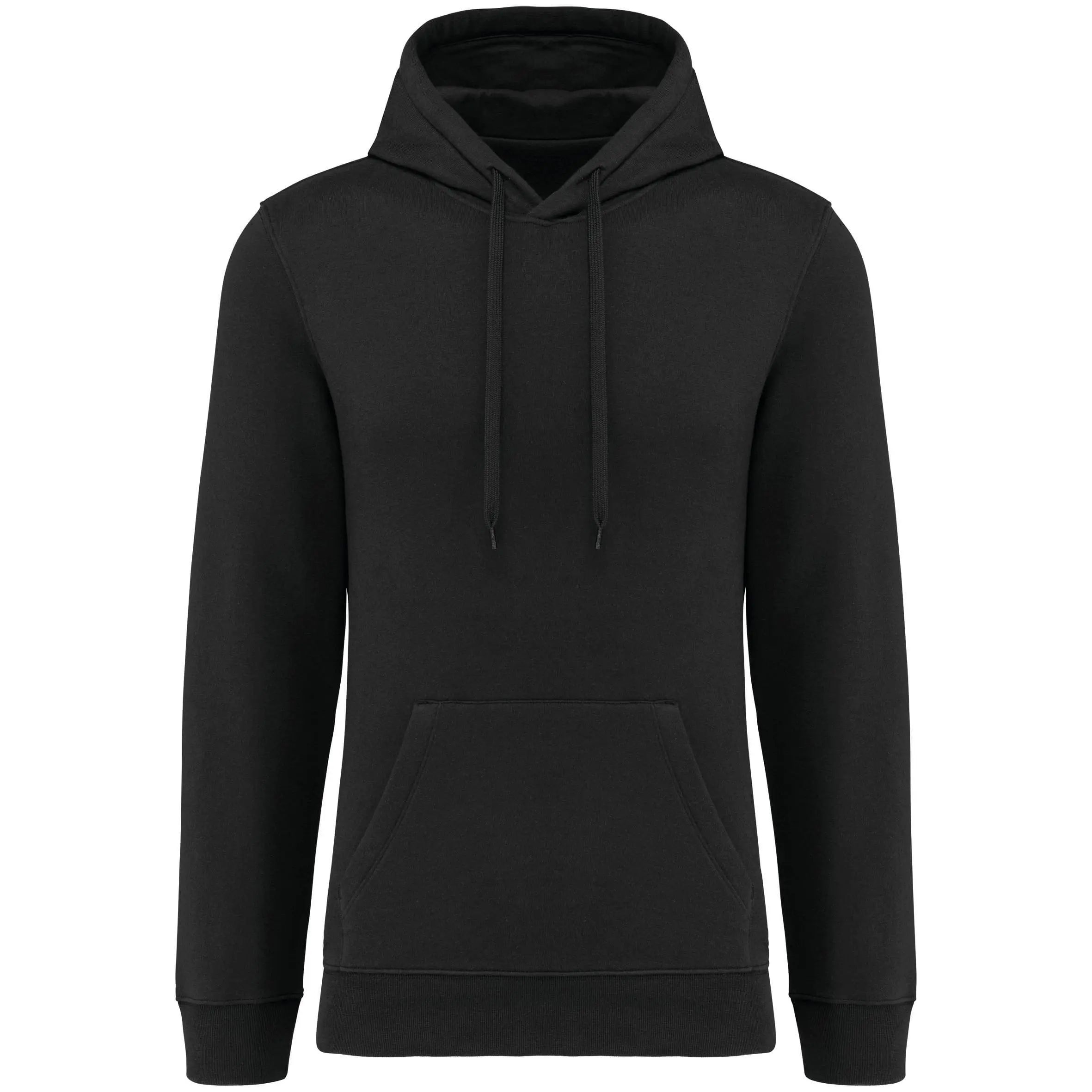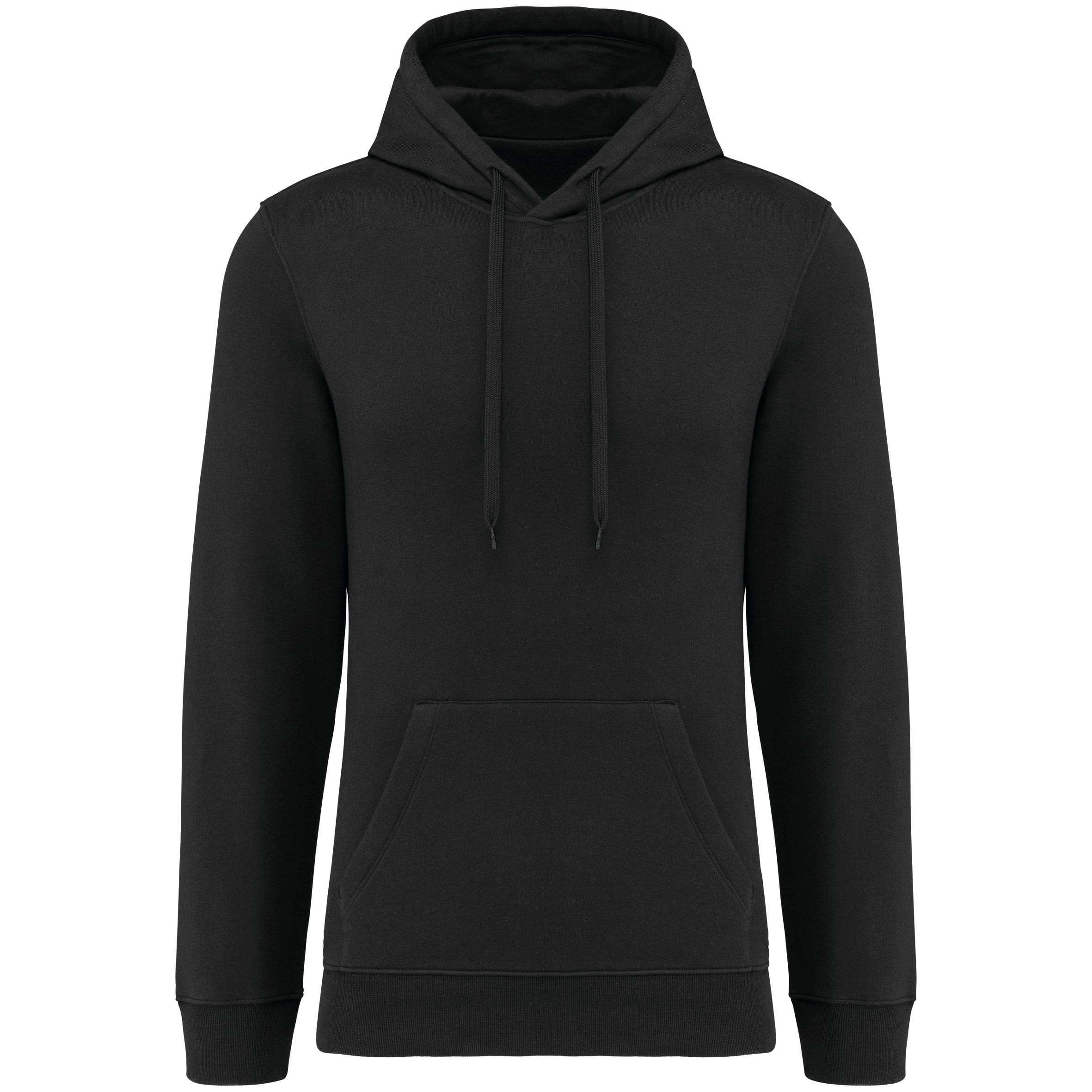 80% katoen / 20% polyester. Geborsteld LSF-fleece 3 draden (Low Shrinkage Fleece), behandeld tegen pluizen. Gemaakt in Portugal. Straight snit. Cut-and-sew-techniek. 1×1 ribboord in buisconstructie voor een betere afwerking aan de mouwuiteinden en de onderkant. Kangoeroezak. Gevoerde capuchon in 100% jerseykatoen met platte aanrijgkoordjes die door knoopsgaten lopen. Halvemaanvormige afwerking aan de binnenkant van de kraag. Dubbel stiksel aan de mouwuiteinden en de onderkant. Geen merklabel, maar een maatlabel in de kraag voor eenvoudige personalisatie.