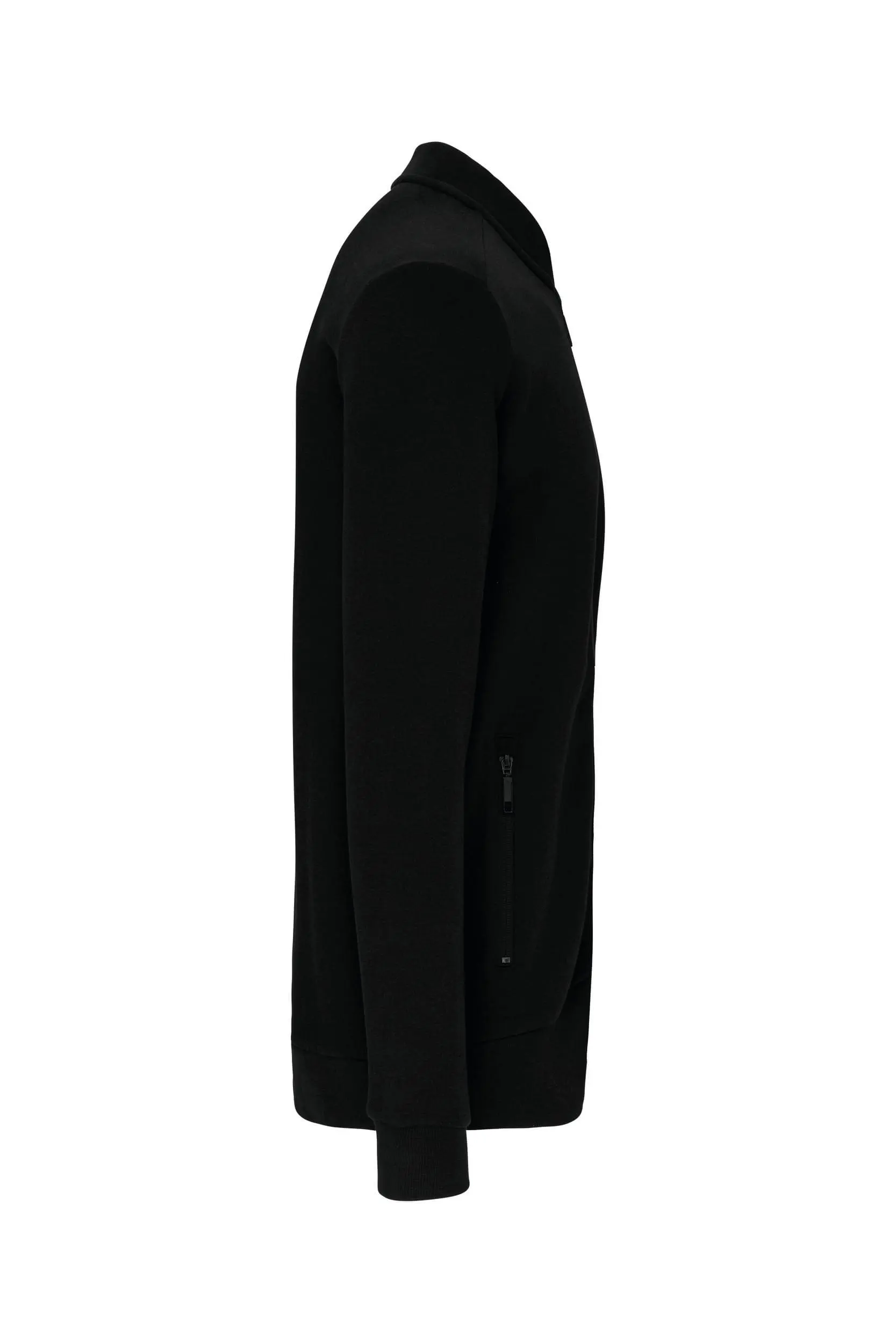 80% katoen / 20% polyester. Sweat molleton 3 draden met LSF-behandeling (Low Shrinkage Fleece). Wasbaar op 60°C. Ritssluiting en 2 toon-op-toon ritszakken aan de voorkant. Nektape met visgraatmotief. Ribboord aan de mouwuiteinden en de onderkant. Gecertificeerd STANDARD 100 by OEKO-TEX®N° CQ1007/7, IFTH.