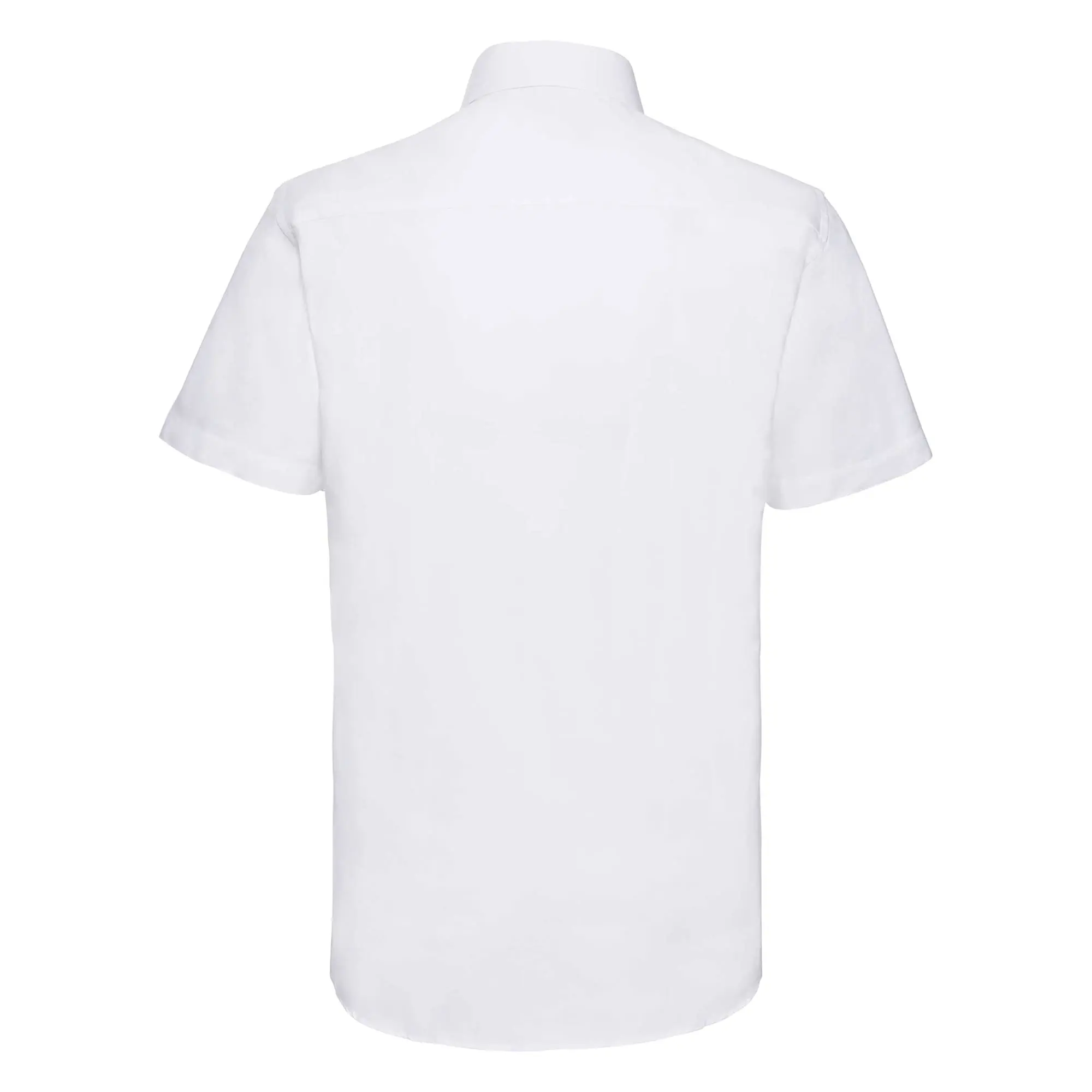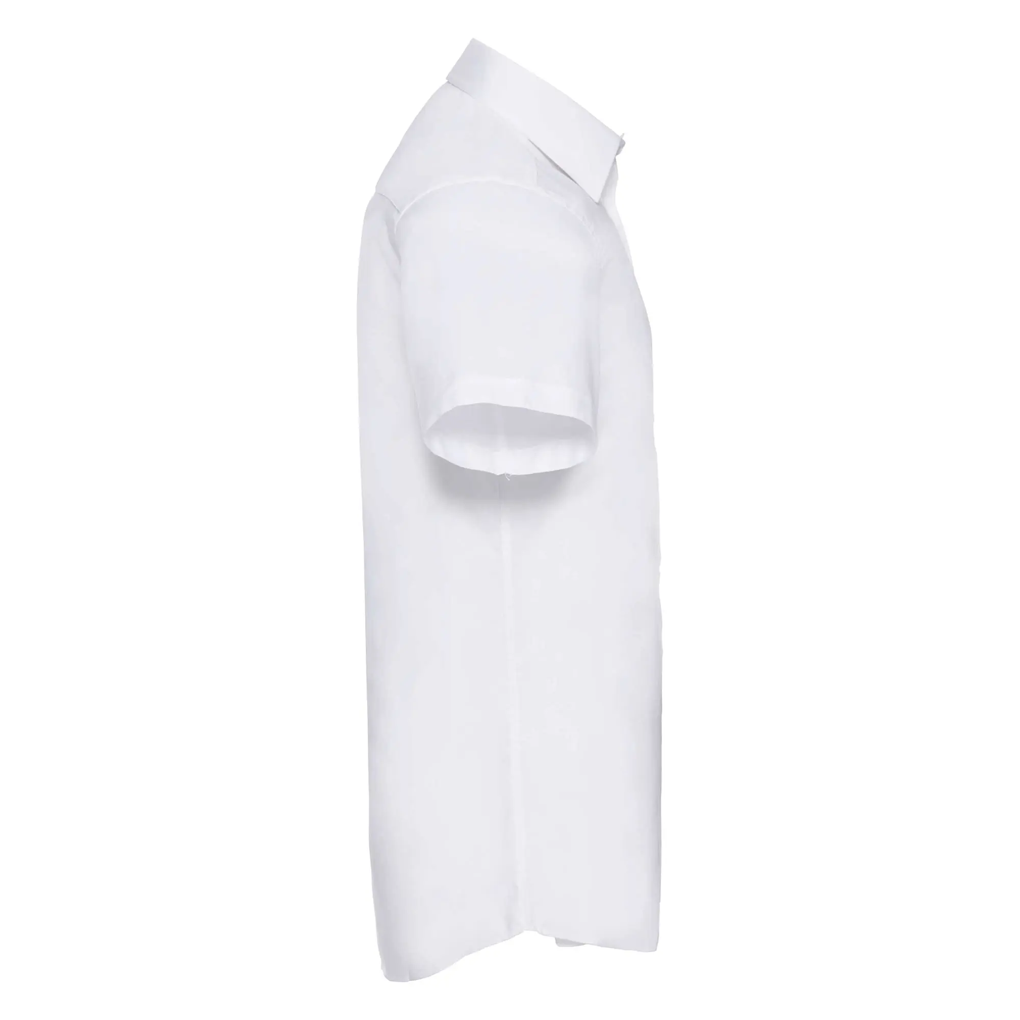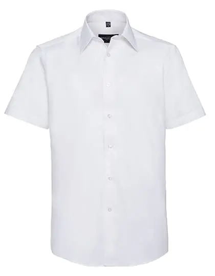 Shirt SSL. 70% katoen-30% polyester, oxford. Gewicht: Wit 130 g/m², Kleur 135 g/m². Easy Care. Hedendaags getailleerd model. Verstevigde semi-open kraag. Ronde zoom.