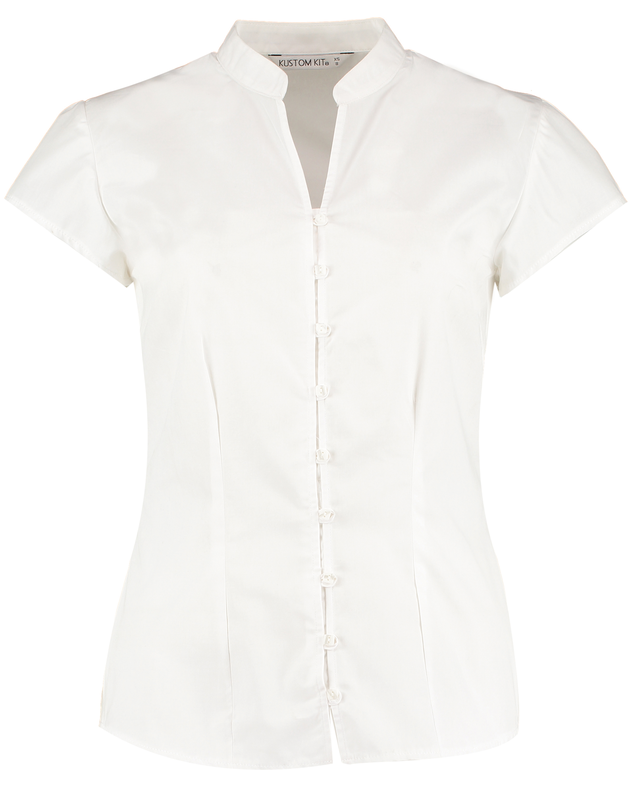 Tailored Fit Mandarin Collar Poplin Blouse Cap Sleeve
